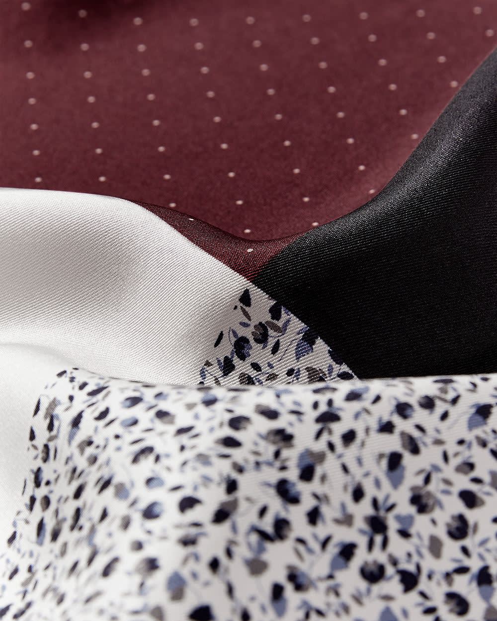 Micro patterns and colour block pocket square with black trim. Modern yet classic, it's the perfect way to bring an urban touch to your look with 4 different way to wear it, showing a different motif each time.