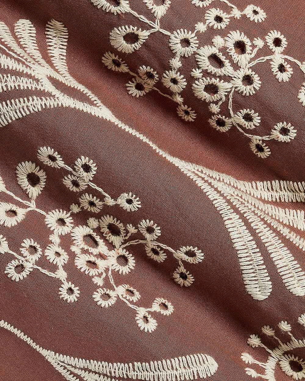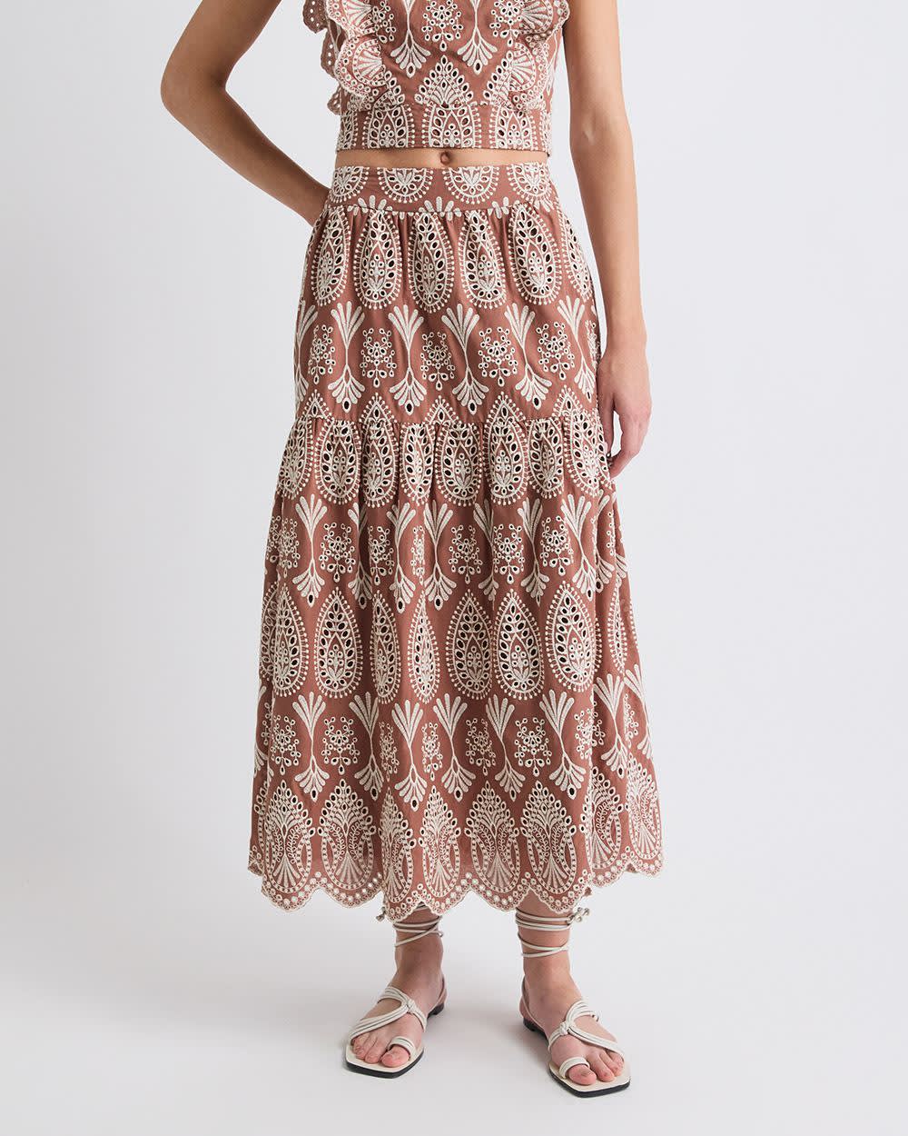 This beautiful A-line midi skirt made in cotton voile and featuring delicate boho embroideries is just what you need to add some style to your summer wardrobe.