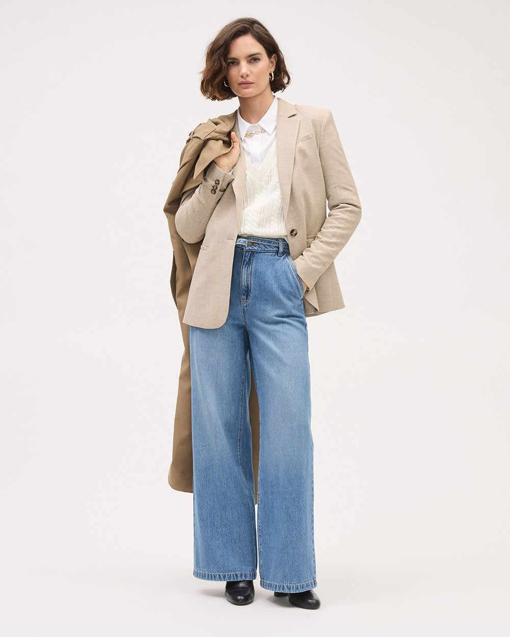 A beige blazer that definitely deserves a spot in your wardrobe. Designed in a fitted silhouette and made in a stretch fabric that will provide you with all-day comfort, this blazer is a timeless piece you are sure to love. Matching pants available.