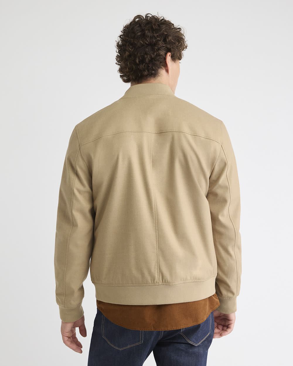 The perfect blend of casual and elevated thanks to its brushed twill fabric and bomber silhouette, this zipped jacket will be put to good use for transitional weather.