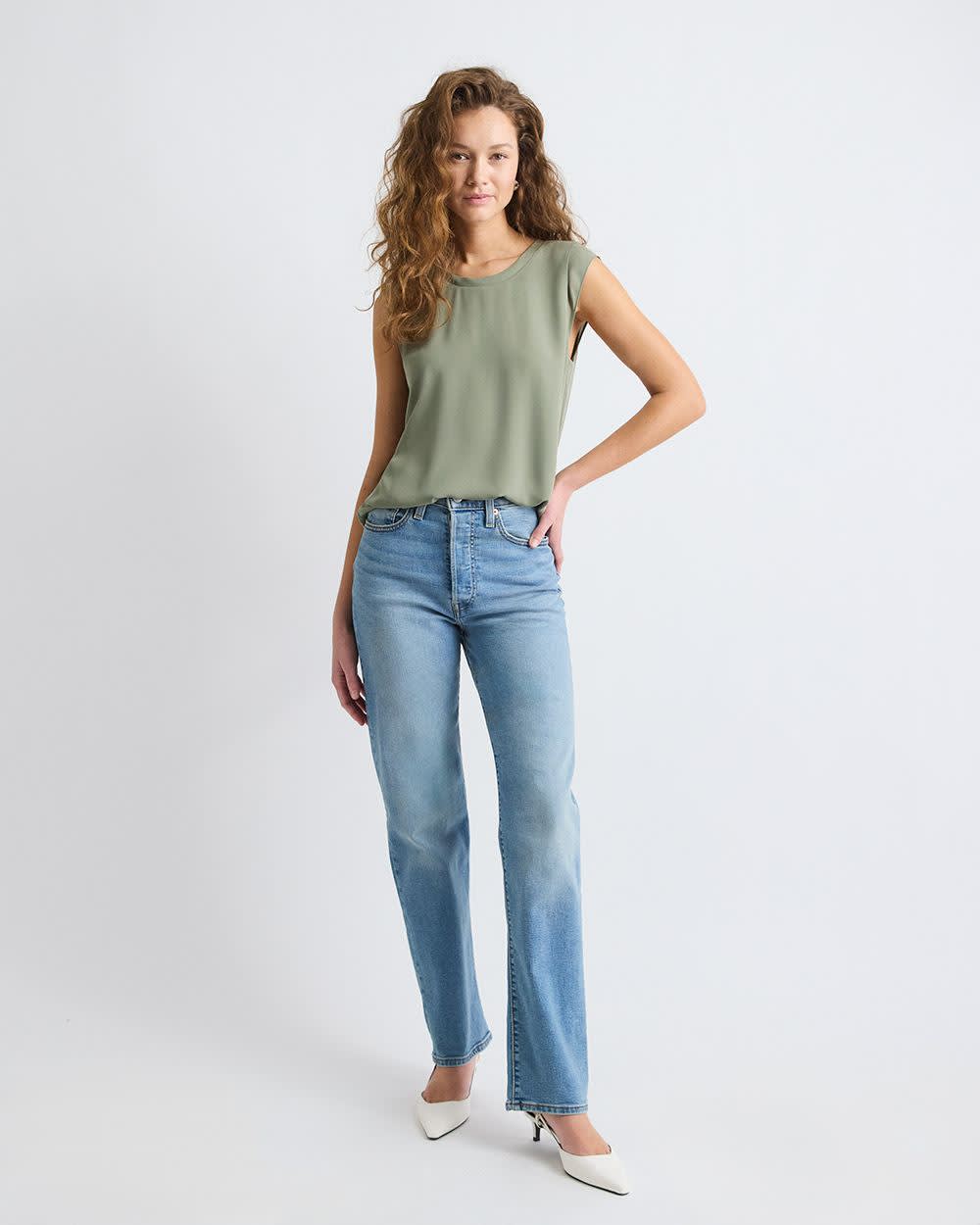Cap-Sleeve Crew-Neck Blouse