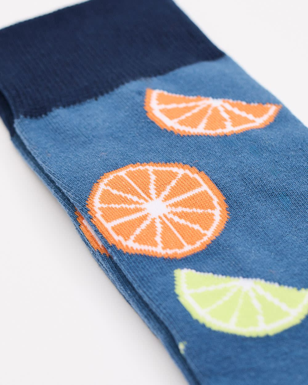Add some personality to your outfit with these men's blue cotton-blend socks featuring colourful citrus.