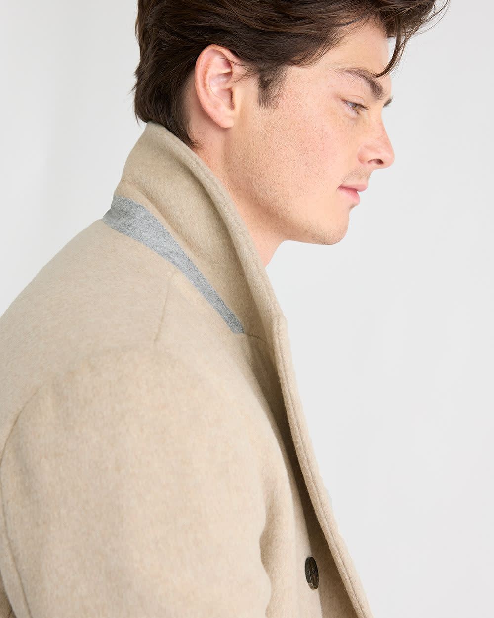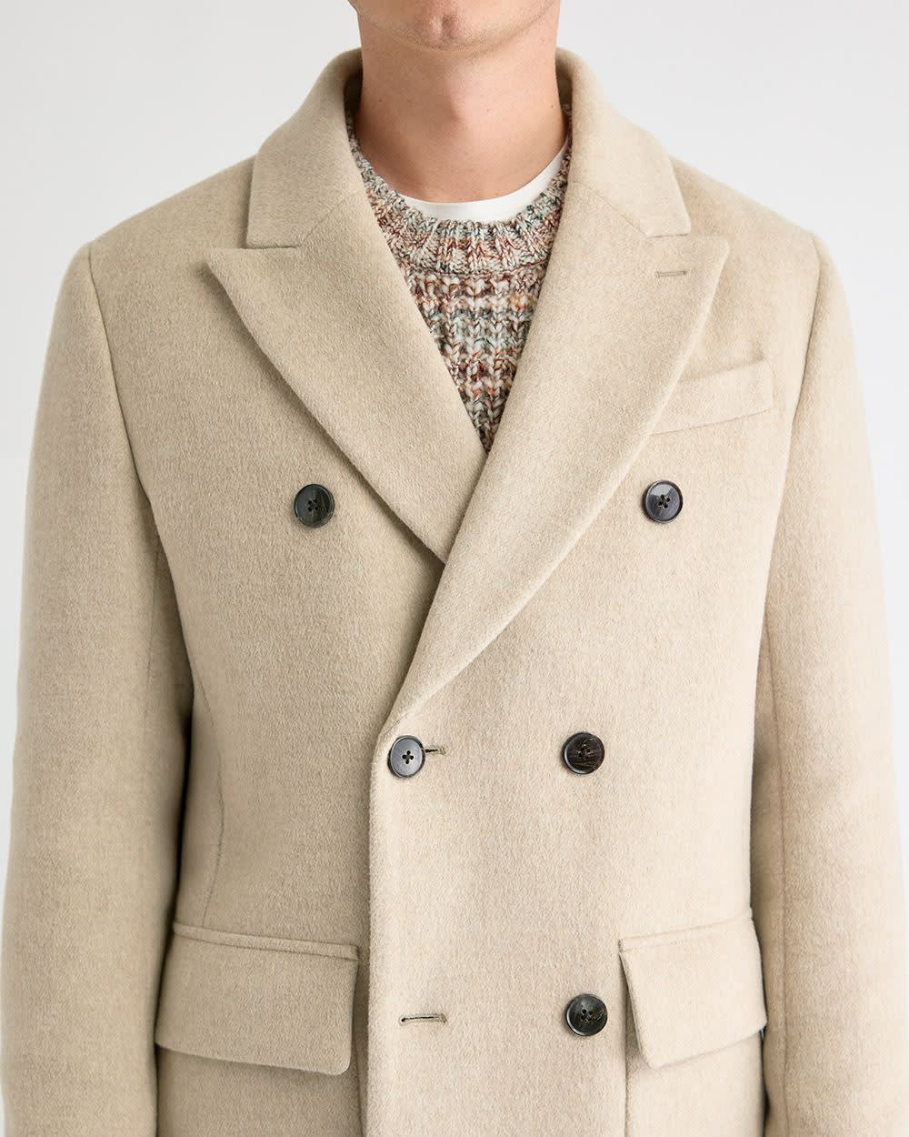 This classic coat made in an elegant wool blend is perfect to complete your mid-season look. Featuring a tailored collar and a double-breasted closure, simply add your favourite scarf to complete the look.