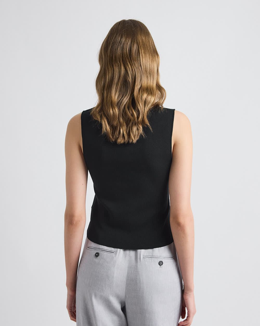 This classic-fit crew-neck buttoned-down sweater vest is just what you need to add a unique trendy touch to your outfit.