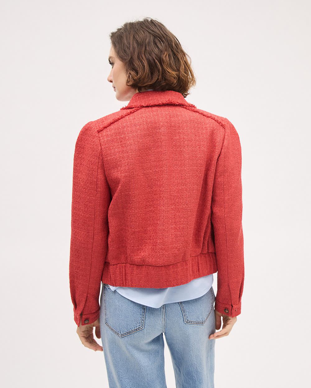 Cropped Tweed Bomber Jacket