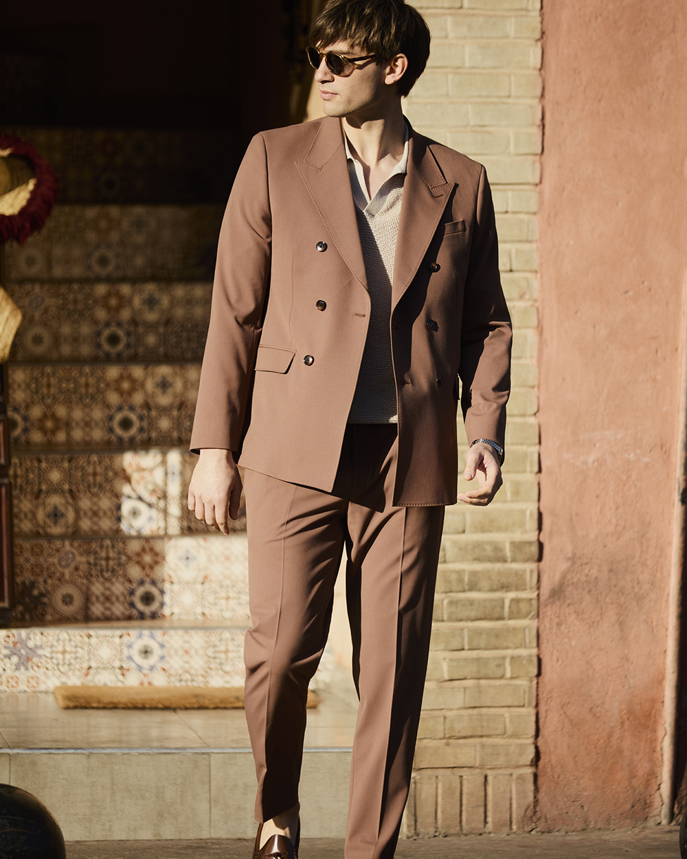 Short-Sleeve Johnny-Collar Sweater with Open Stitches
