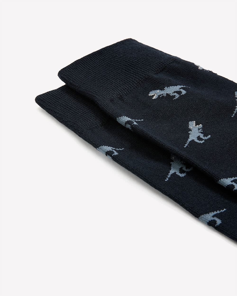 Add some personality to your outfit with these men's blue cotton-blend socks featuring tiny dinosaurs.