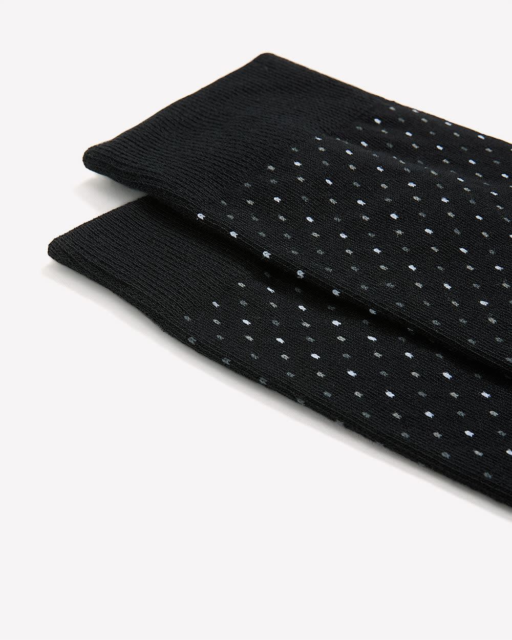 Add some personality to your outfit with these men's black cotton-blend socks featuring a dotted pattern.