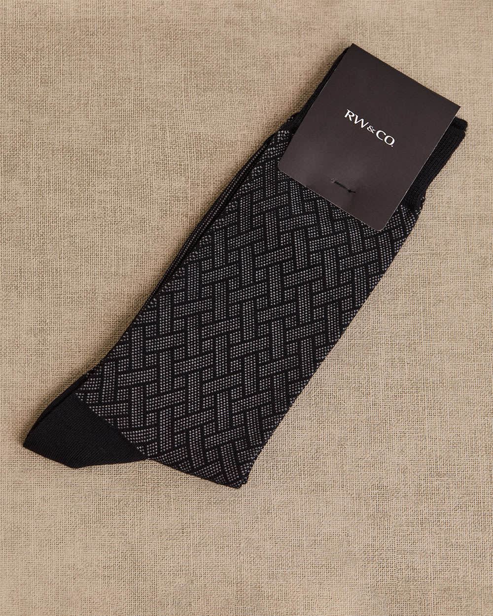 Add some personality to your suiting ensemble with these men's navy cotton-blend socks featuring a geometric pattern.