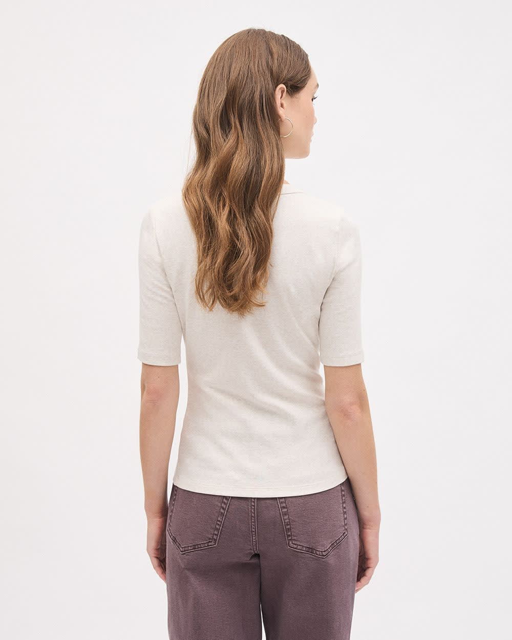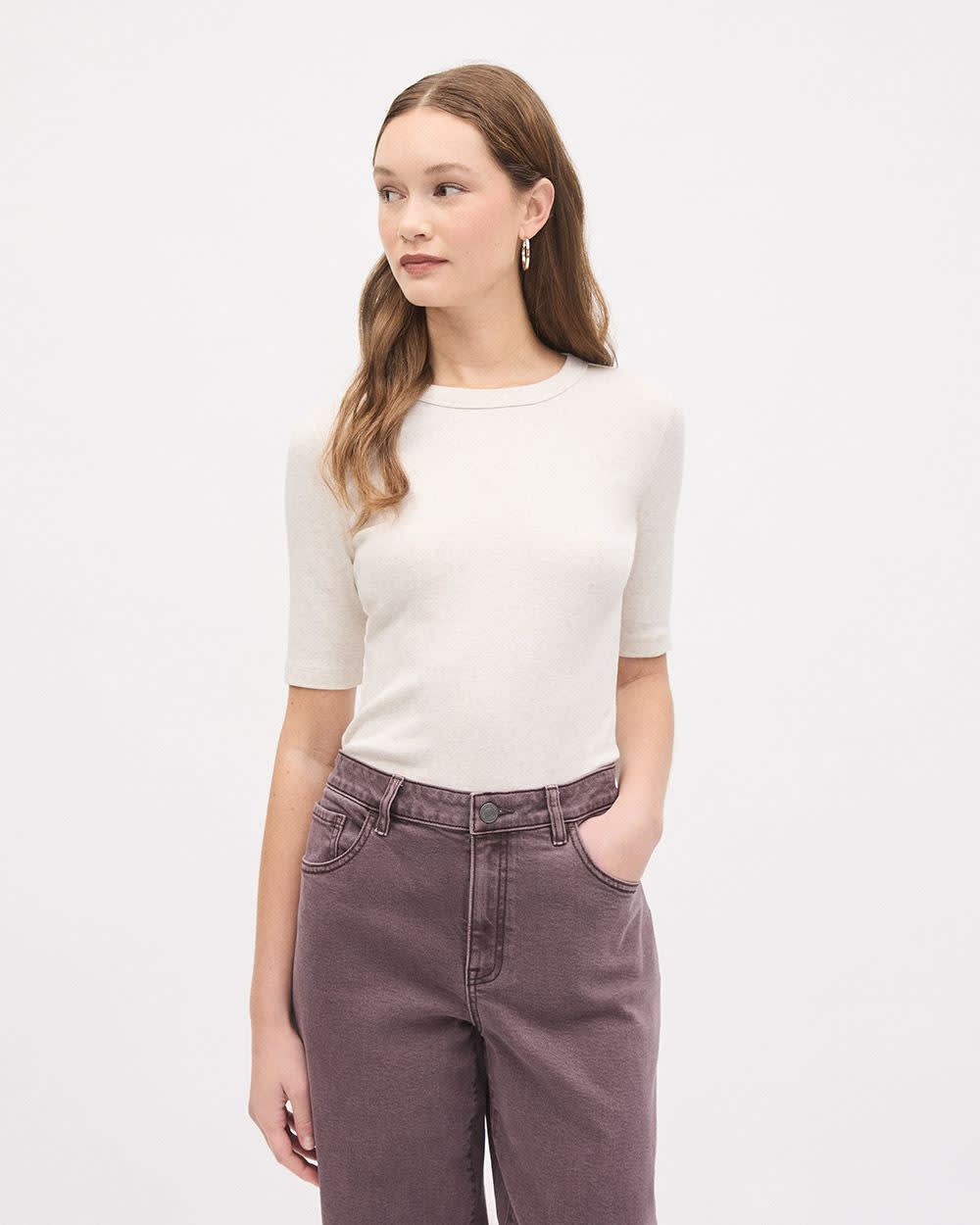Elbow-Sleeve Crew-Neck Fitted Ribbed Tee