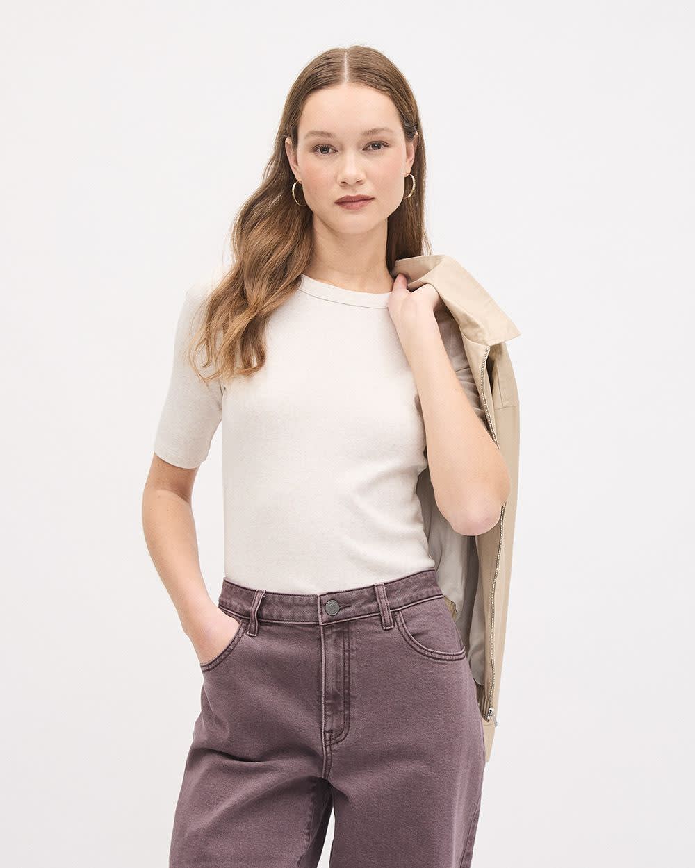 Made in a comfortable ribbed knit, this crew-neck t-shirt featuring trendy elbow sleeves is an essential piece you should have in your wardrobe.