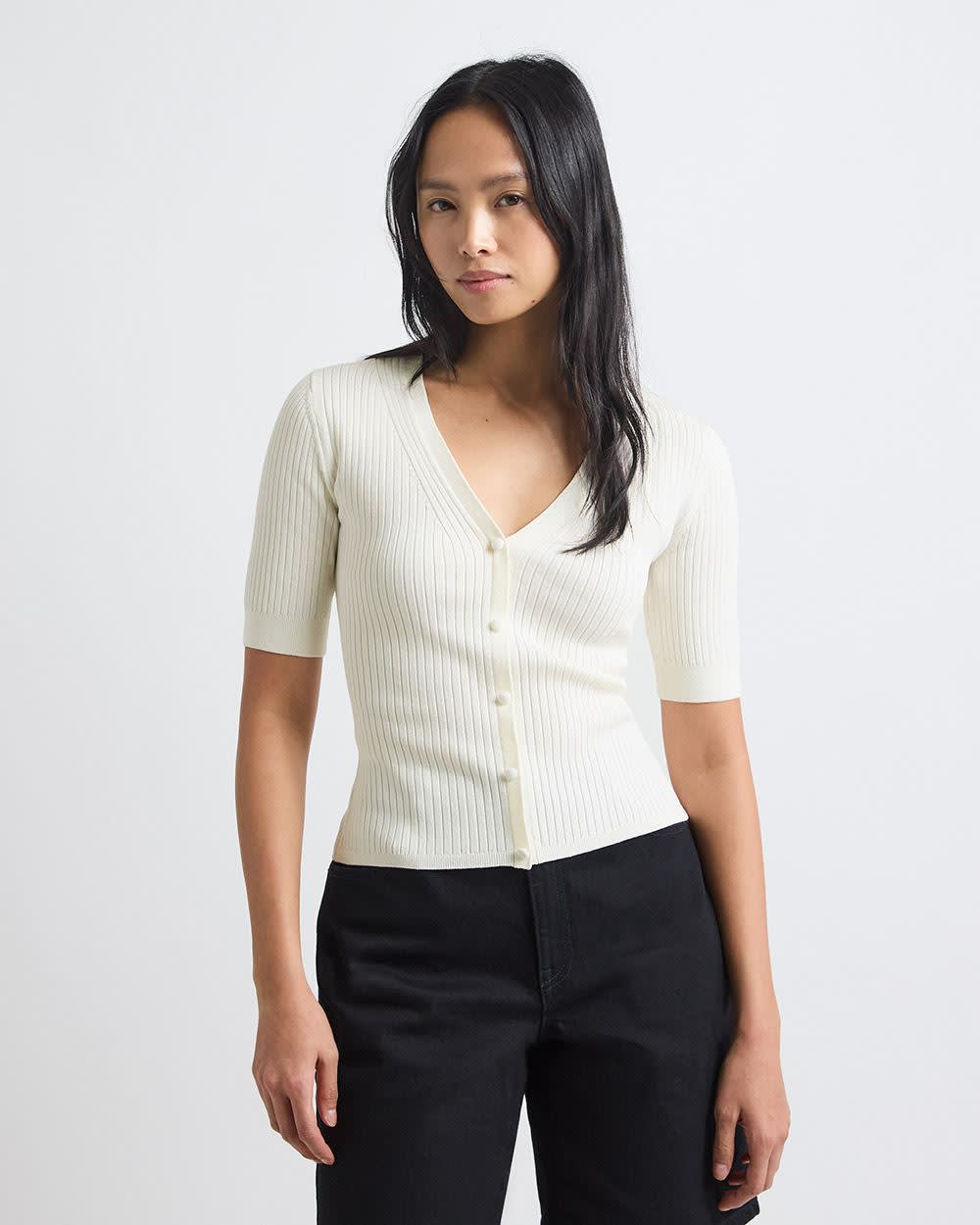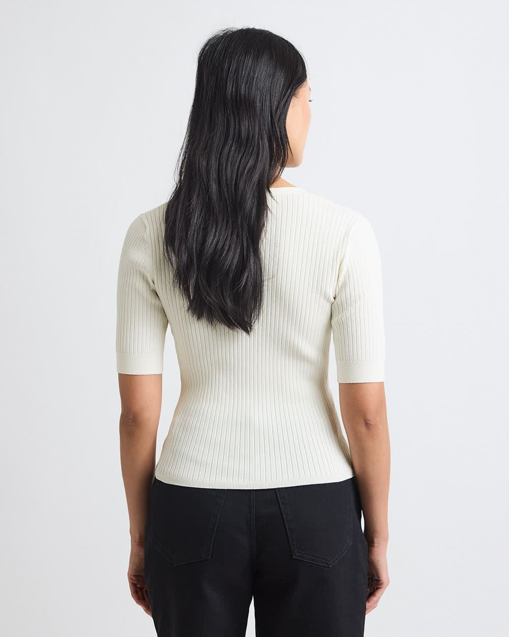 Make a statement with this super trendy sweater featuring unique elbow sleeves. Made in a comfortable ribbed knit for extra style.