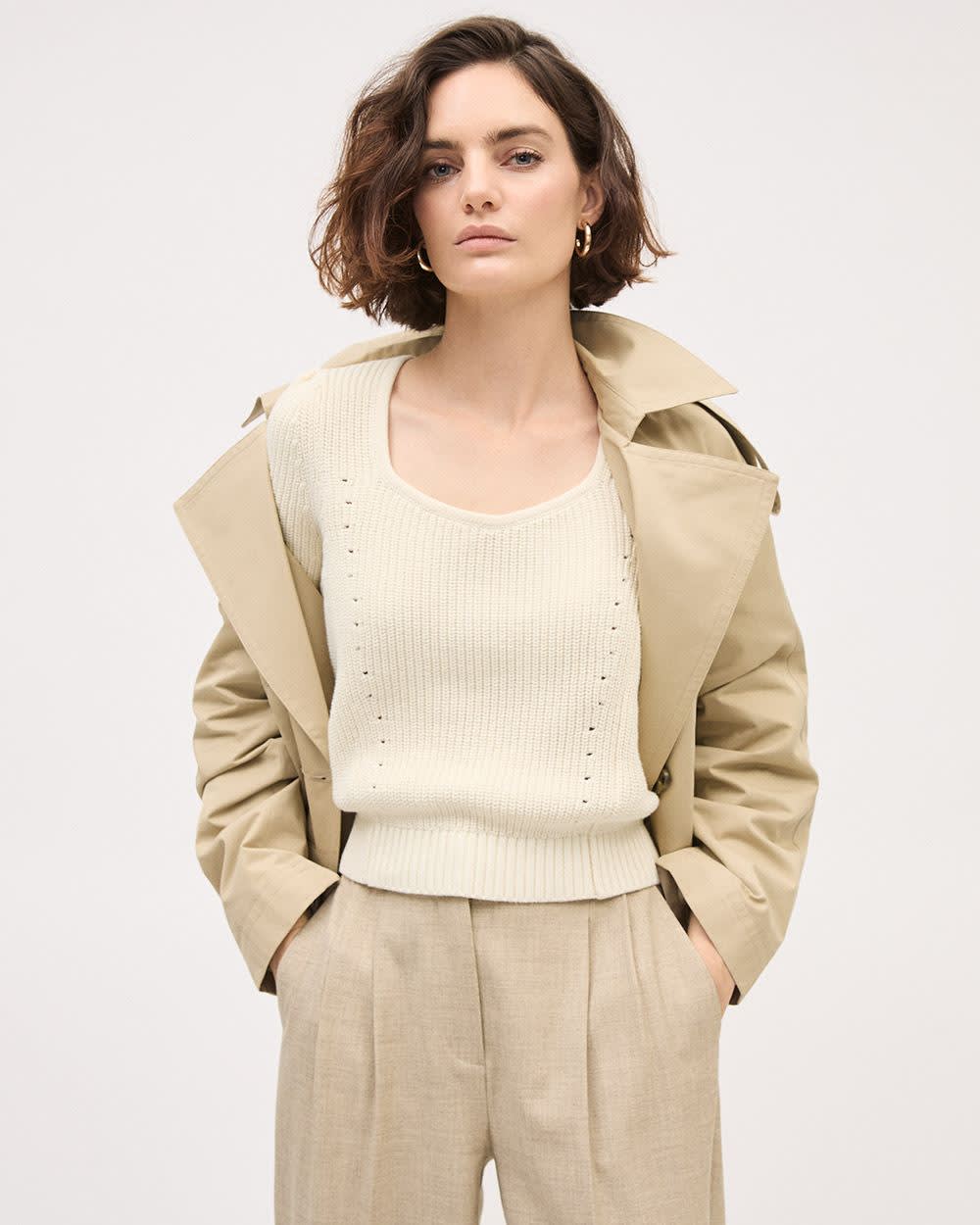 Made in a stretch textured knit, this cropped sweater featuring elbow sleeves and a feminine square neckline pairs perfectly with your favourite pair of jeans for a great everyday style.