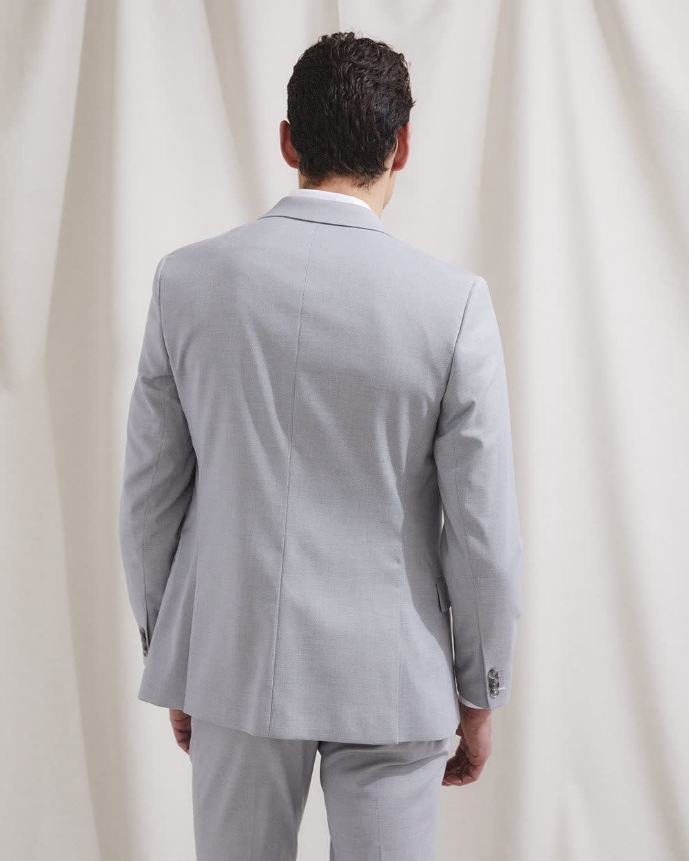 A fresh, streamlined design in slightly stretch light grey fabric, this essential suit blazer is your new closet must-have for work or any special occasion. Matching suit pant available.