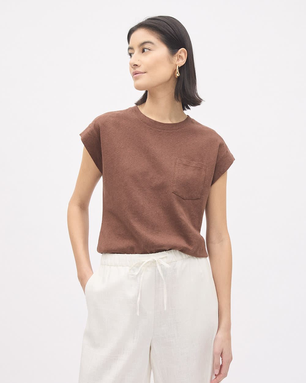 Extended-Sleeve Crew-Neck Linen-Blend Top
