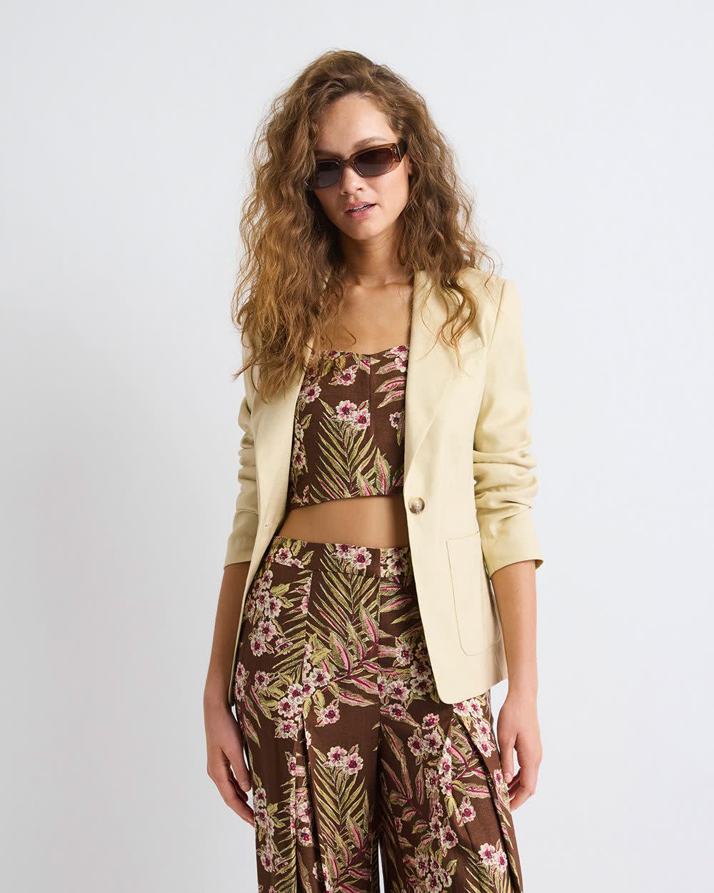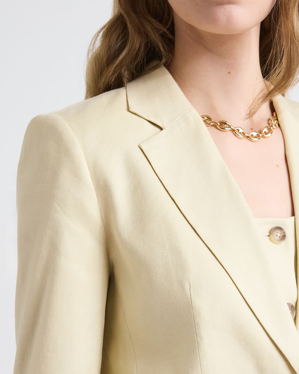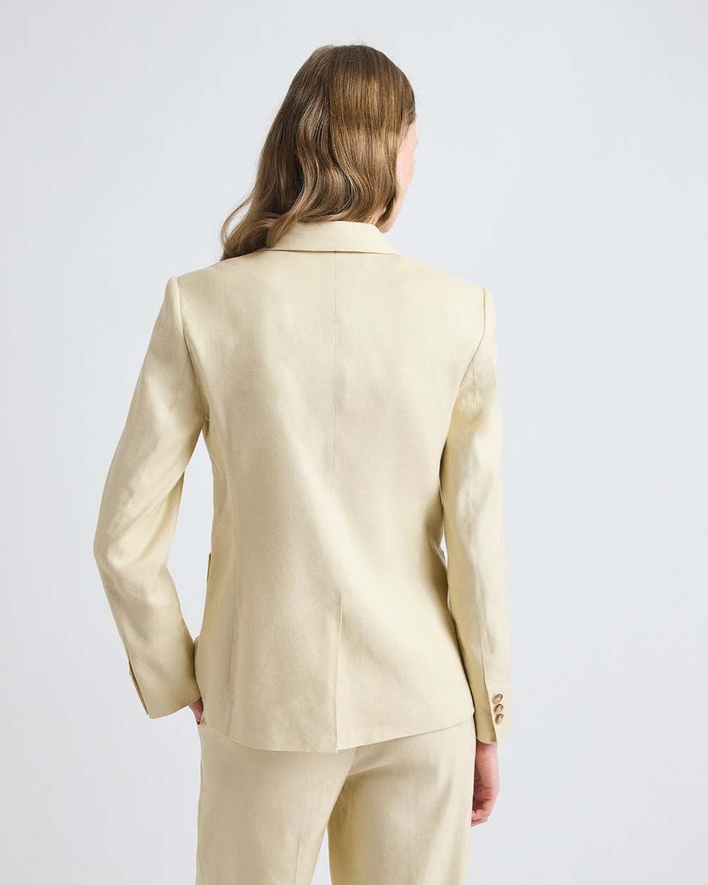 If linen is your favourite summer fabric, this super trendy fitted one-button blazer made in a beautiful sunny hue was made for you. Matching suit pants available.