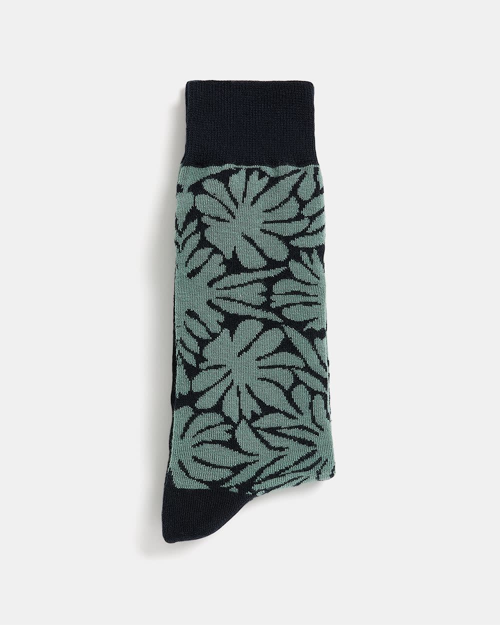 Add some personality to your outfit with these men's cotton-blend socks featuring a navy and green floral pattern.