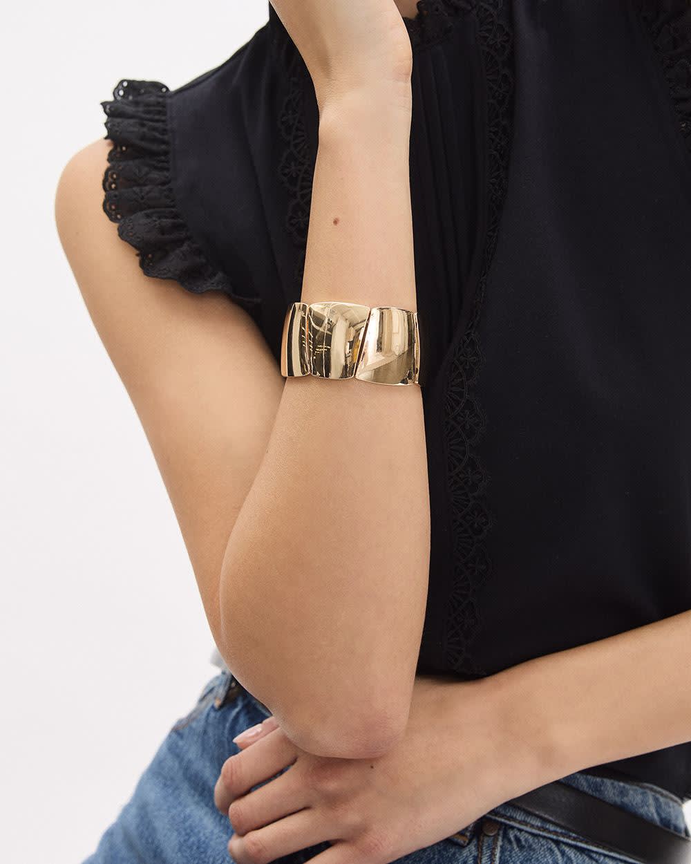 This statement golden bracelet is sure to add a touch of elegance to any outfit.