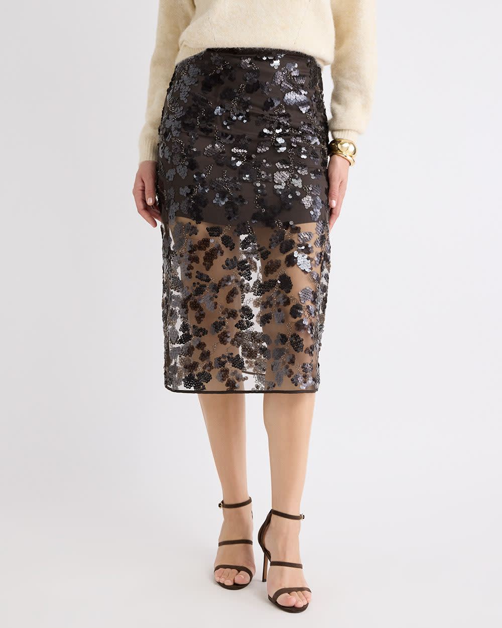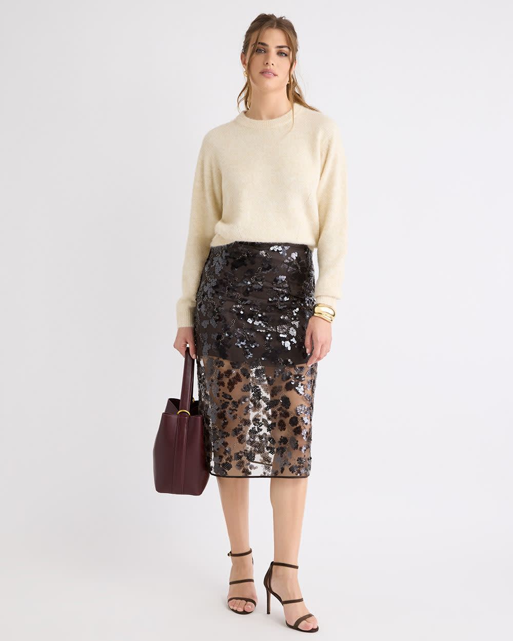 Perfect for the Holiday season, this midi skirt featuring shiny sequins is ideal for any festivities.