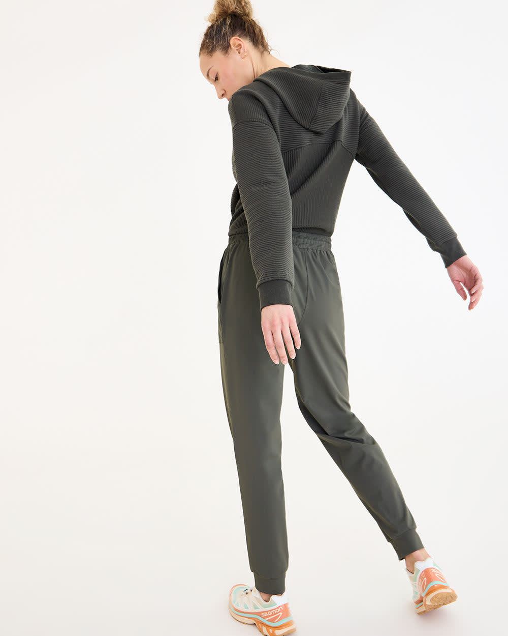 These nylon joggers will keep you nice and warm from the gym to the streets. Styled with an elastic waistband and ankle cuffs.