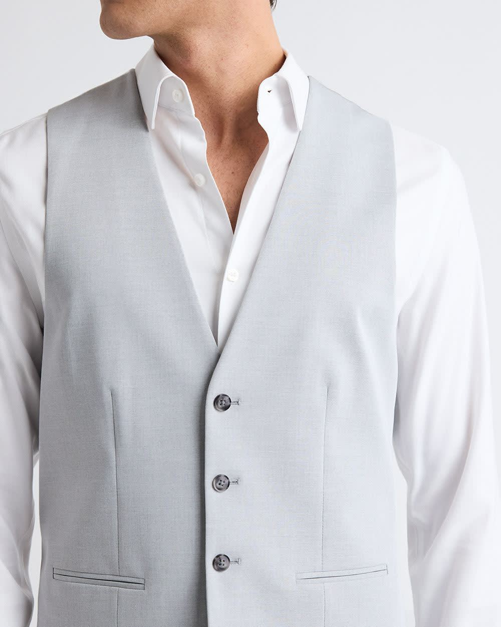 Take your style to the next level with this light grey suit vest for a look that is sure to stand out. Matching pants and blazer available.