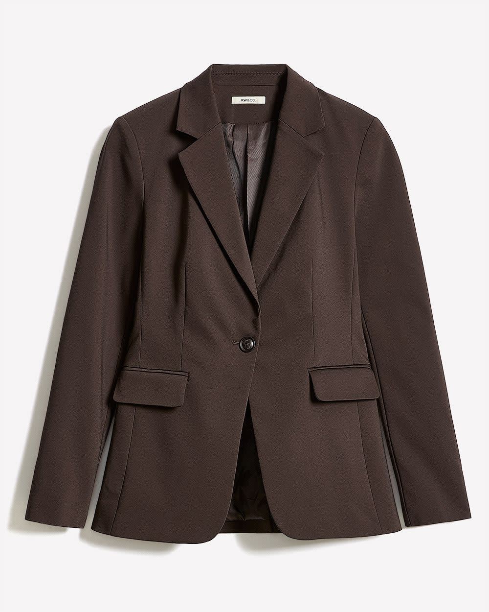 A timeless fitted one-button blazer is a must in a wardrobe. Made in a stretch fabric that ensures all-day comfort, this blazer provides a classic everyday look in an elegant style. Matching pants available.
