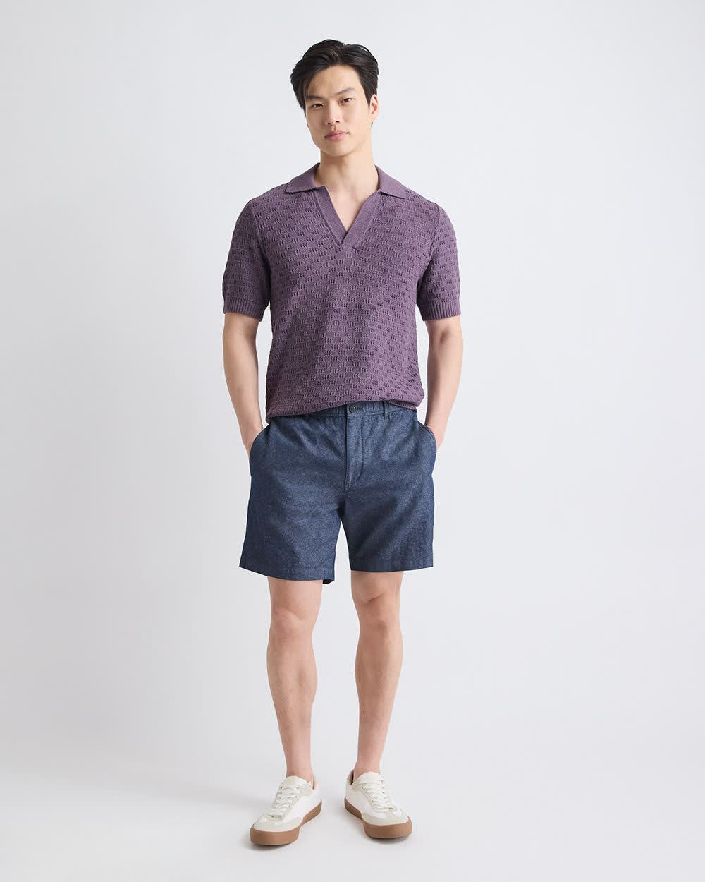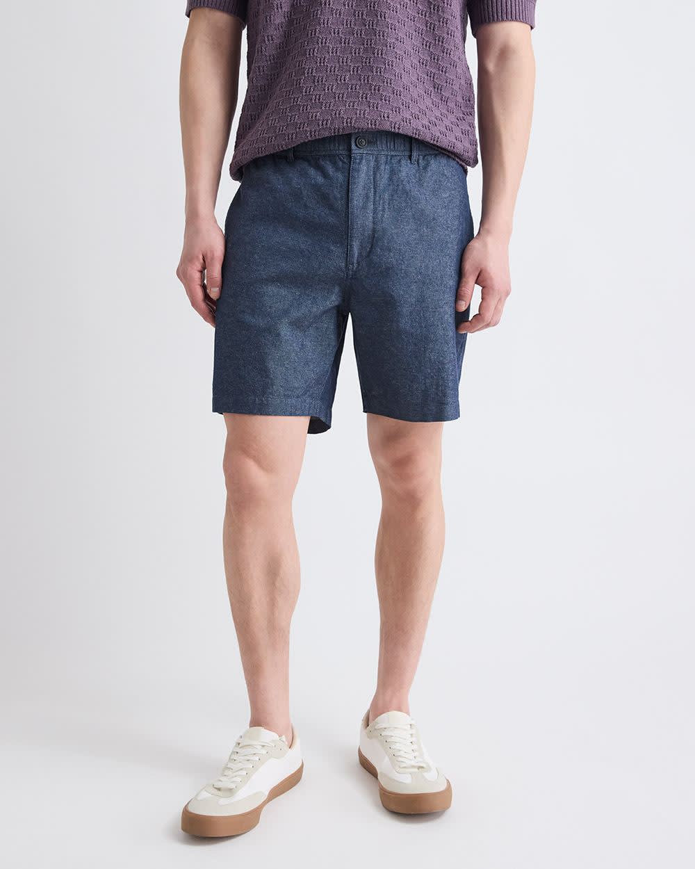 Made in a light linen and cotton blend, these denim-like shorts featuring a comfortable elastic waistband are a definite must-have this summer.