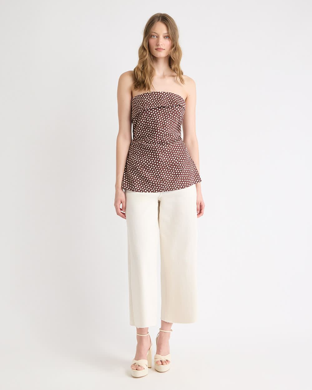 Opt for this linen and viscose blend tube top featuring an elegant straight neckline for a look that is sure to stand out.