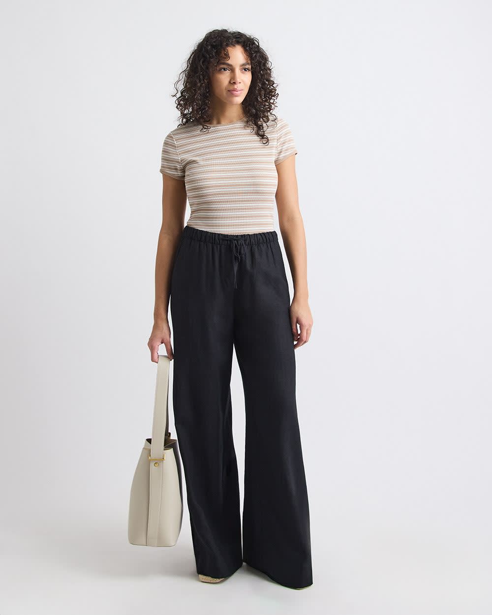 You'll love these cool linen pants featuring a comfortable wide leg. Dress them up with a heeled sandal for a unique style or wear them to chill out with your favourite pair of sneakers.