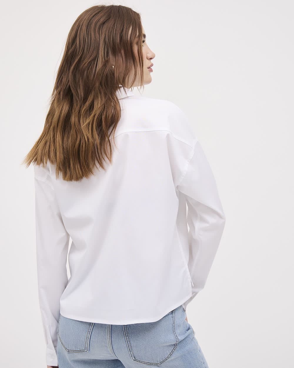 Long-Sleeve Buttoned-Down Poplin Blouse with Floral Print
