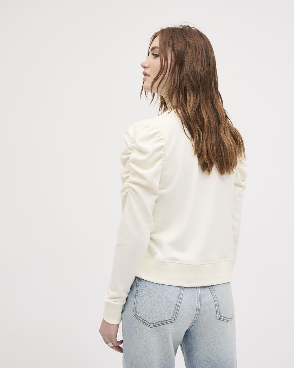 Made in a soft French Terry knit, this crew-neck sweatshirt featuring feminine ruched sleeves never disappoints, whether you wear it with joggers or jeans.