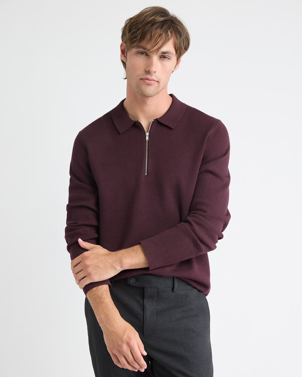 Long-Sleeve Half-Zip Polo Sweater