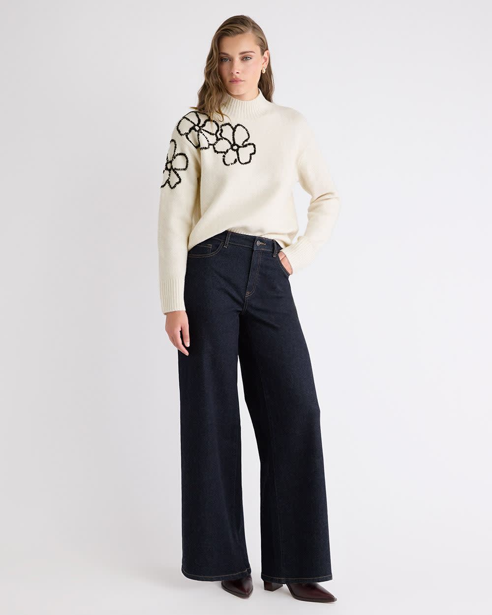 Long-Sleeve Mock-Neck Sweater with Embroidered Pattern