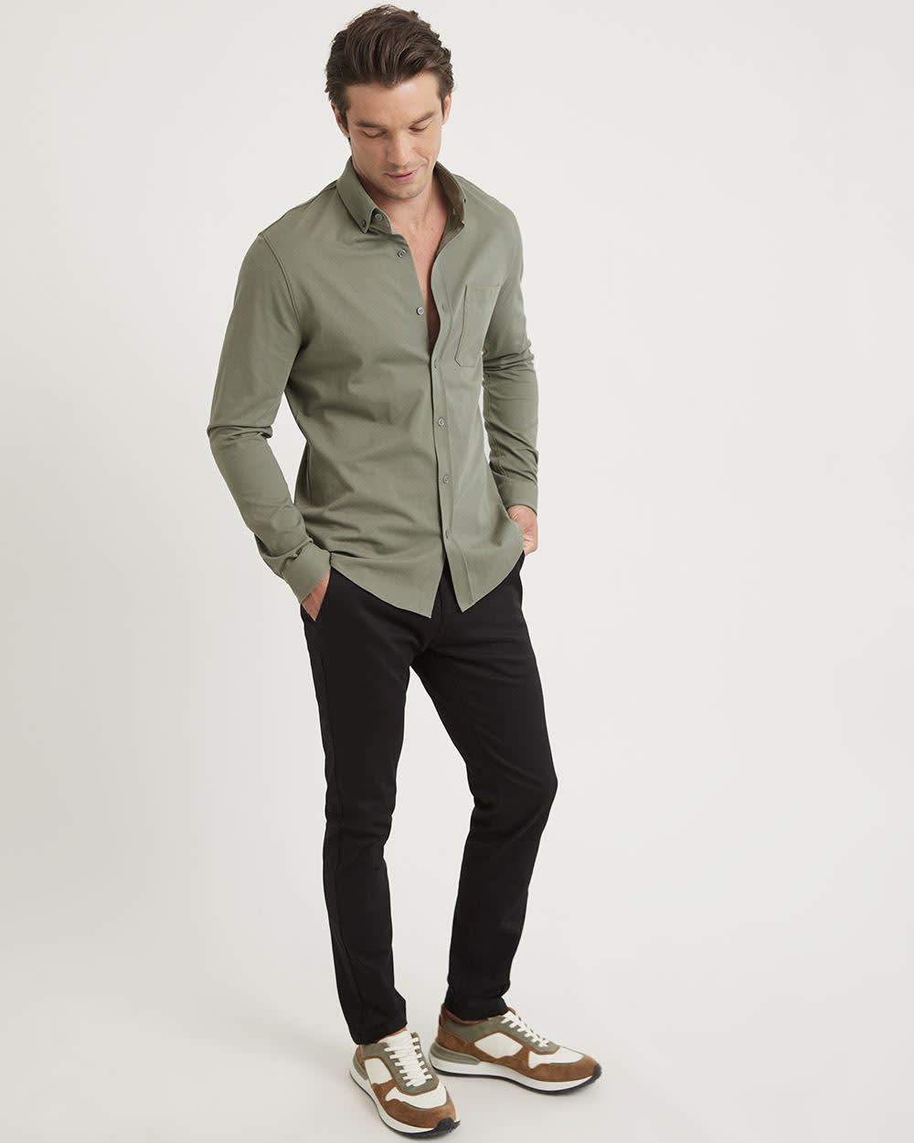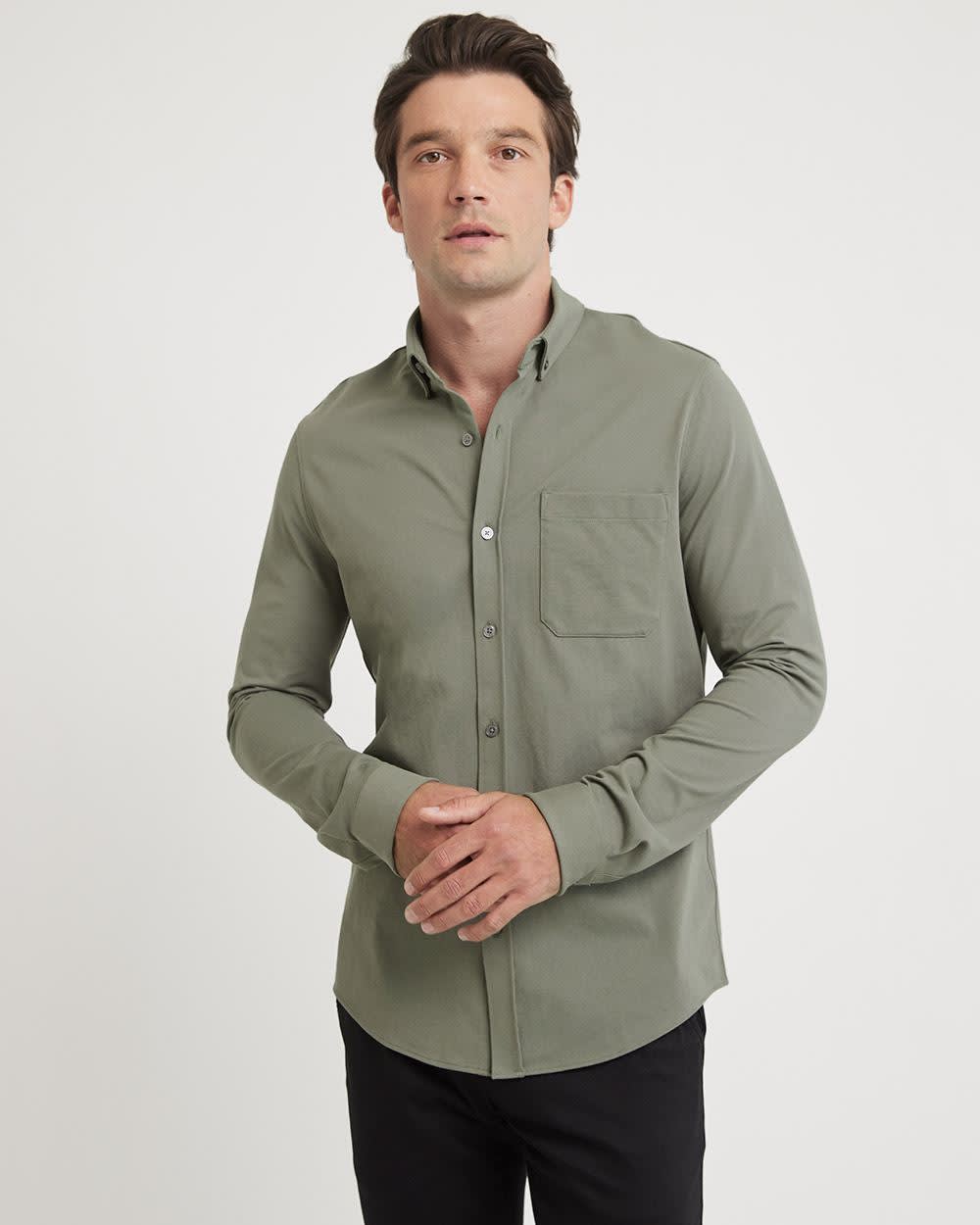 Simple and elegant, this long-sleeve shirt made in a stretch piqué cotton blend is the perfect everyday top. Pairs perfectly with any bottom.