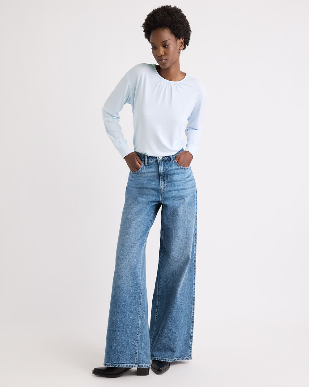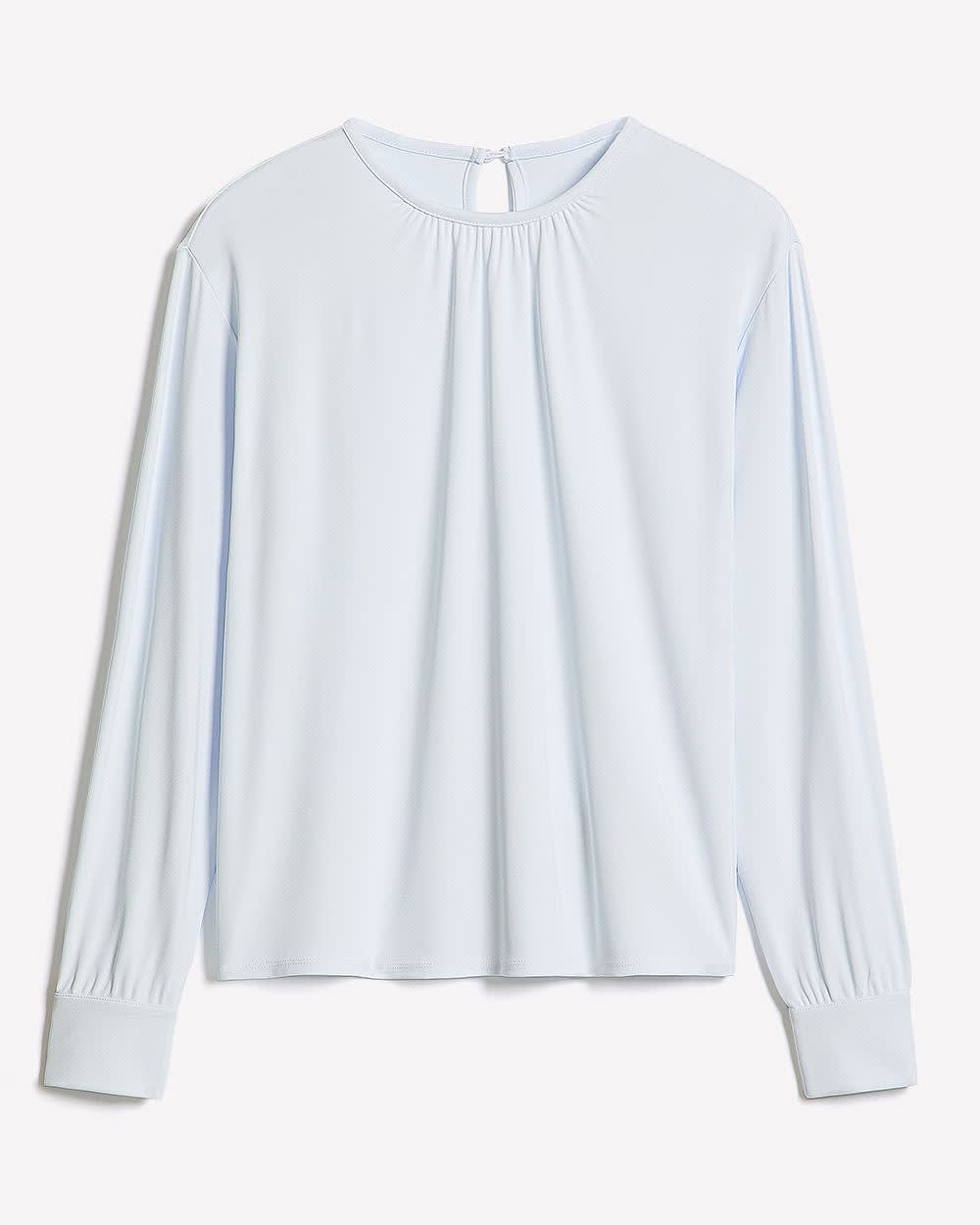 Simple, yet discreetly elegant, this long-sleeve top featuring a unique shirred crew neckline is just what you need to elevate your style.
