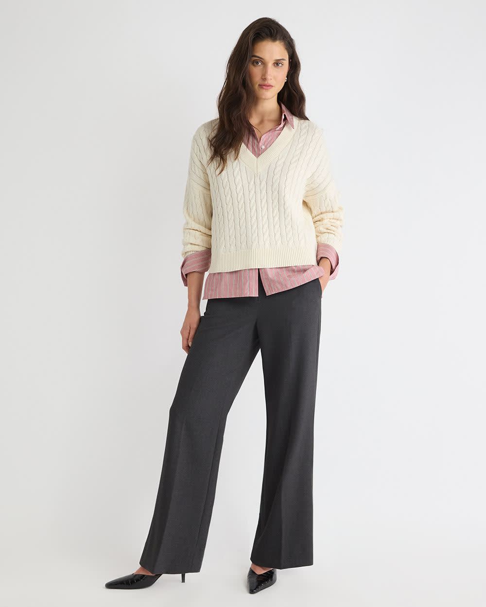 Long-Sleeve V-Neck Cable-Stitch Merino-Blend Sweater