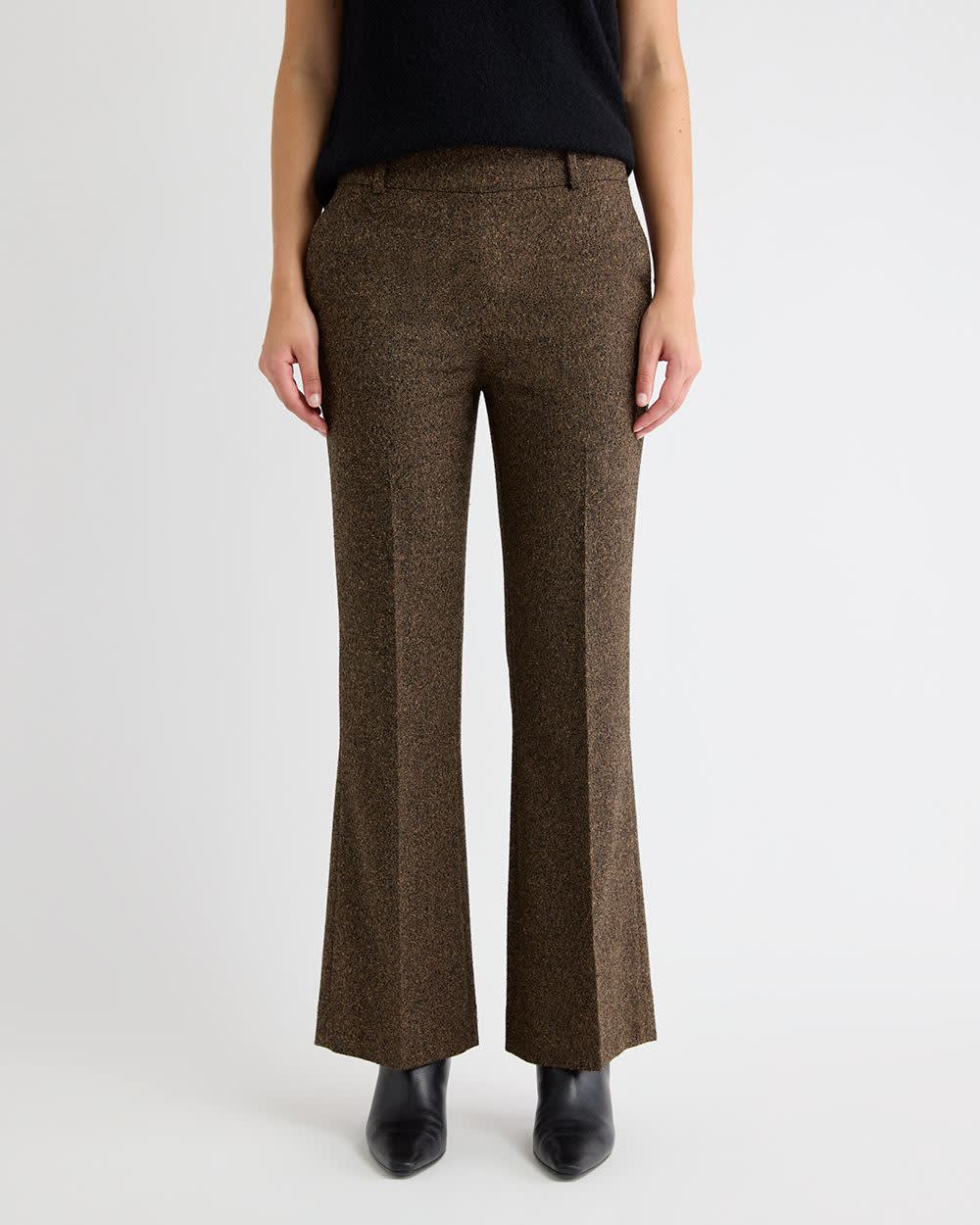 Mid-Rise Flare-Leg Herringbone Pant