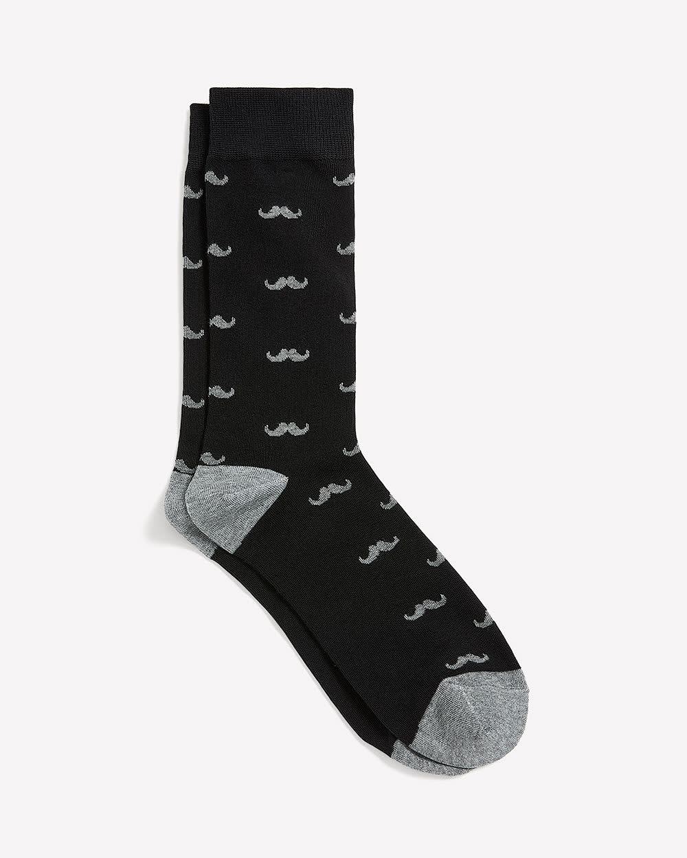 Add some personality to your outfit with these men's cotton-blend socks featuring mustaches for Movember.