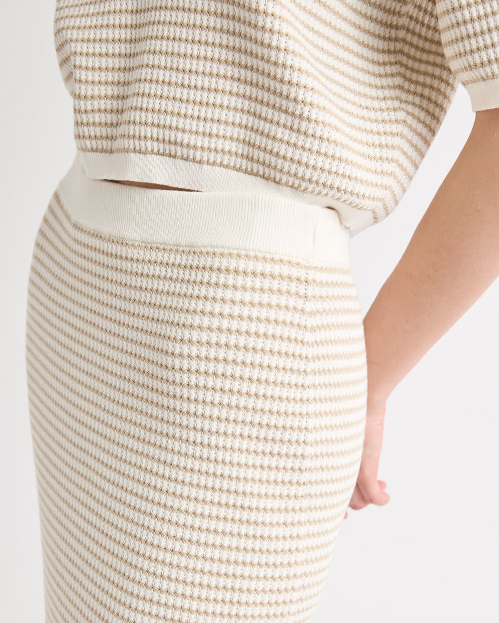 Made in trendy fancy stitches, this midi pencil skirt will quickly become your new favourite outfit this summer, especially when paired with its matching polo sweater.
