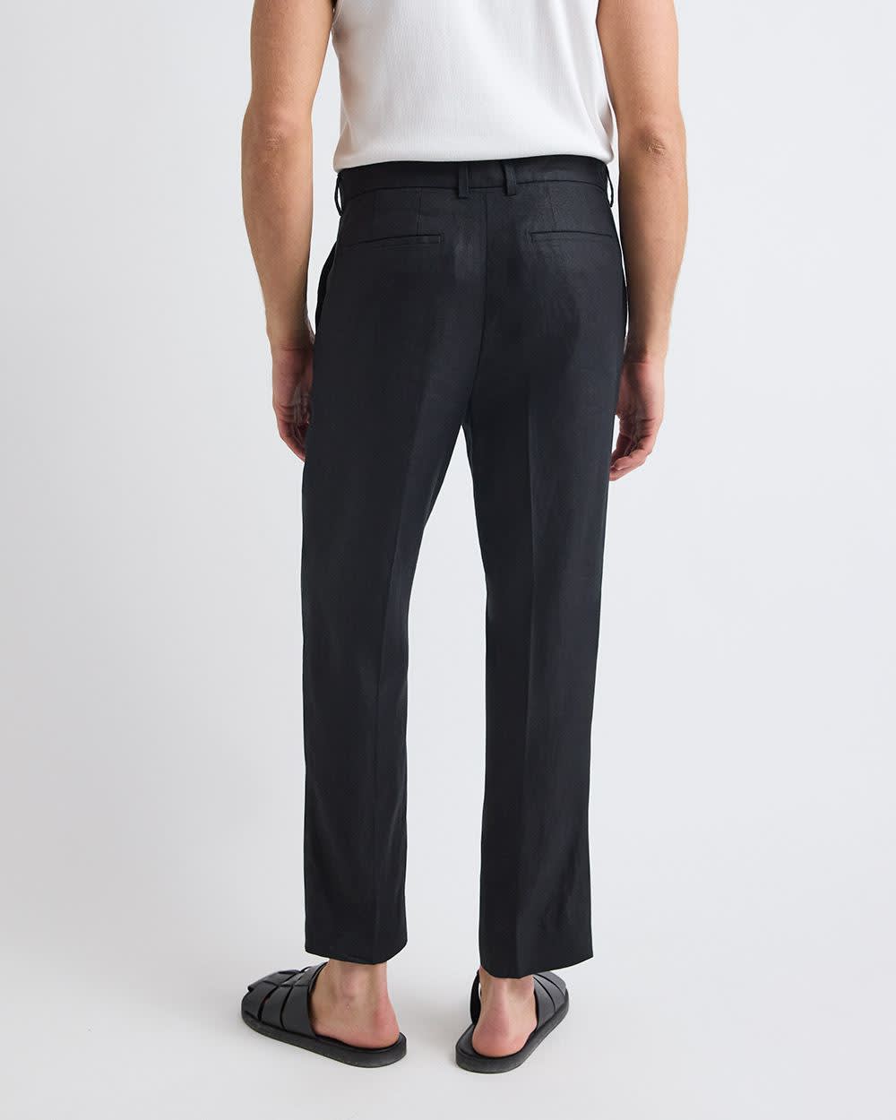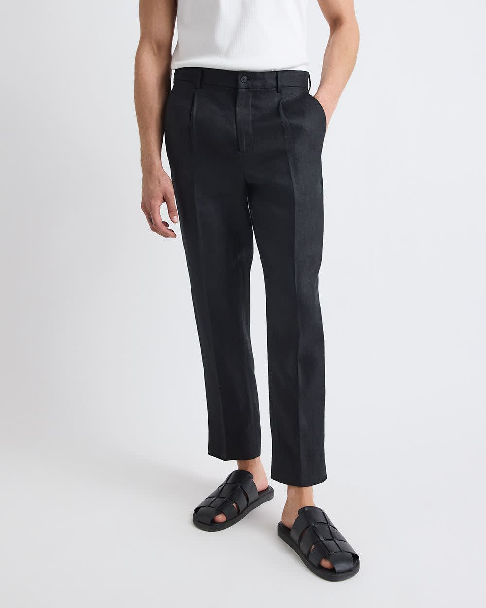 Made in an elegant linen fabric, these tapered-leg pants pair perfectly with both a dressy shirt or a casual sweater, for a versatile style ideal for any occasion.