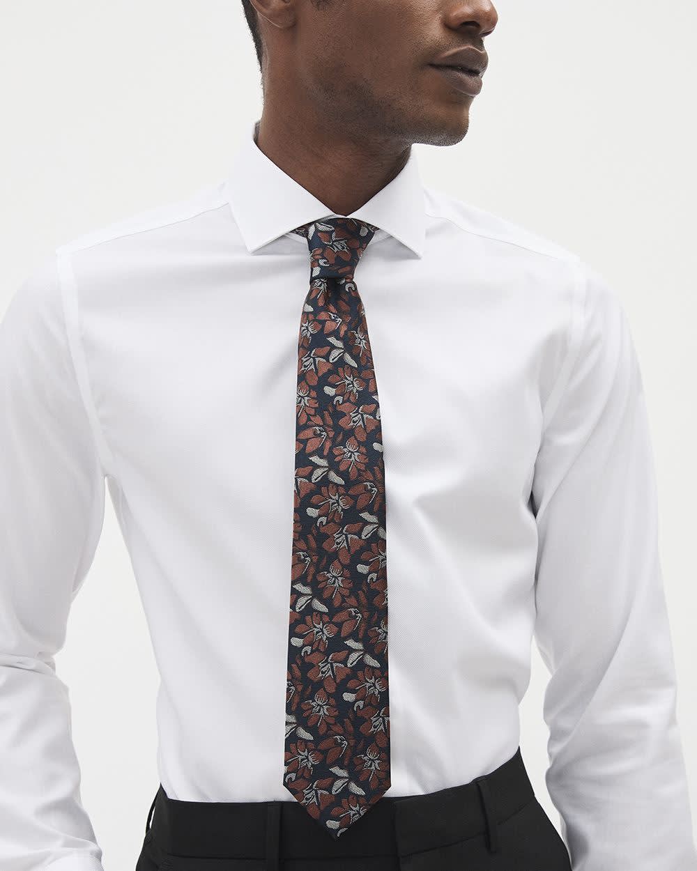 Elevate your look with this regular silk tie featuring a unique floral pattern.