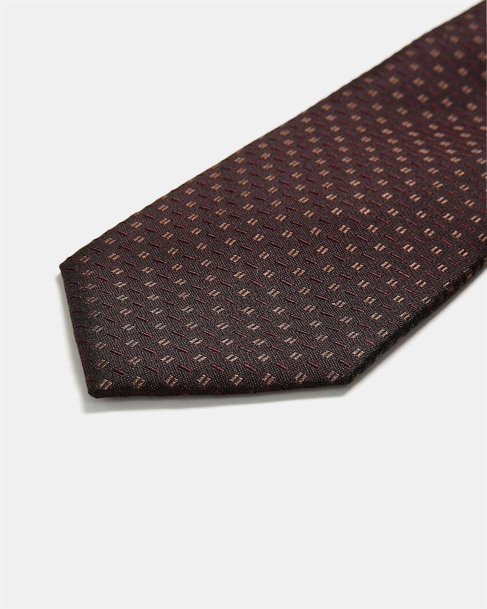 Elevate your look with this regular burgundy silk tie featuring a square geometric pattern.
