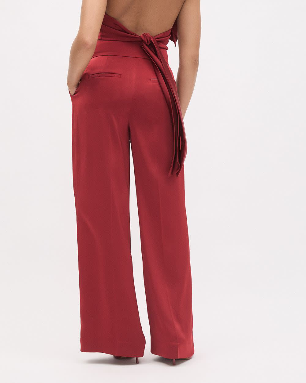 You can only fall in love with these elegant palazzo pants designed in a rich rhubarb hue. Made in comfortable stretch satin, these pants will quickly become your new go-to bottom for fancy night outs.