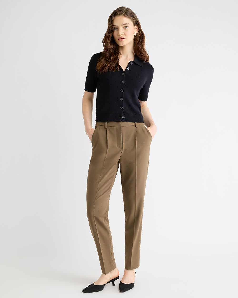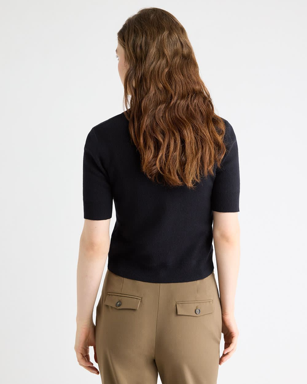 Short Elbow-Sleeve Cardigan with Shirt Collar