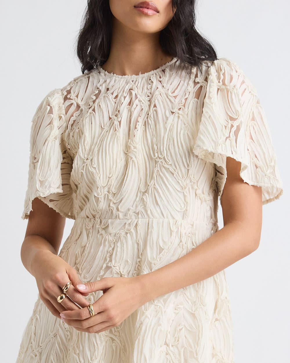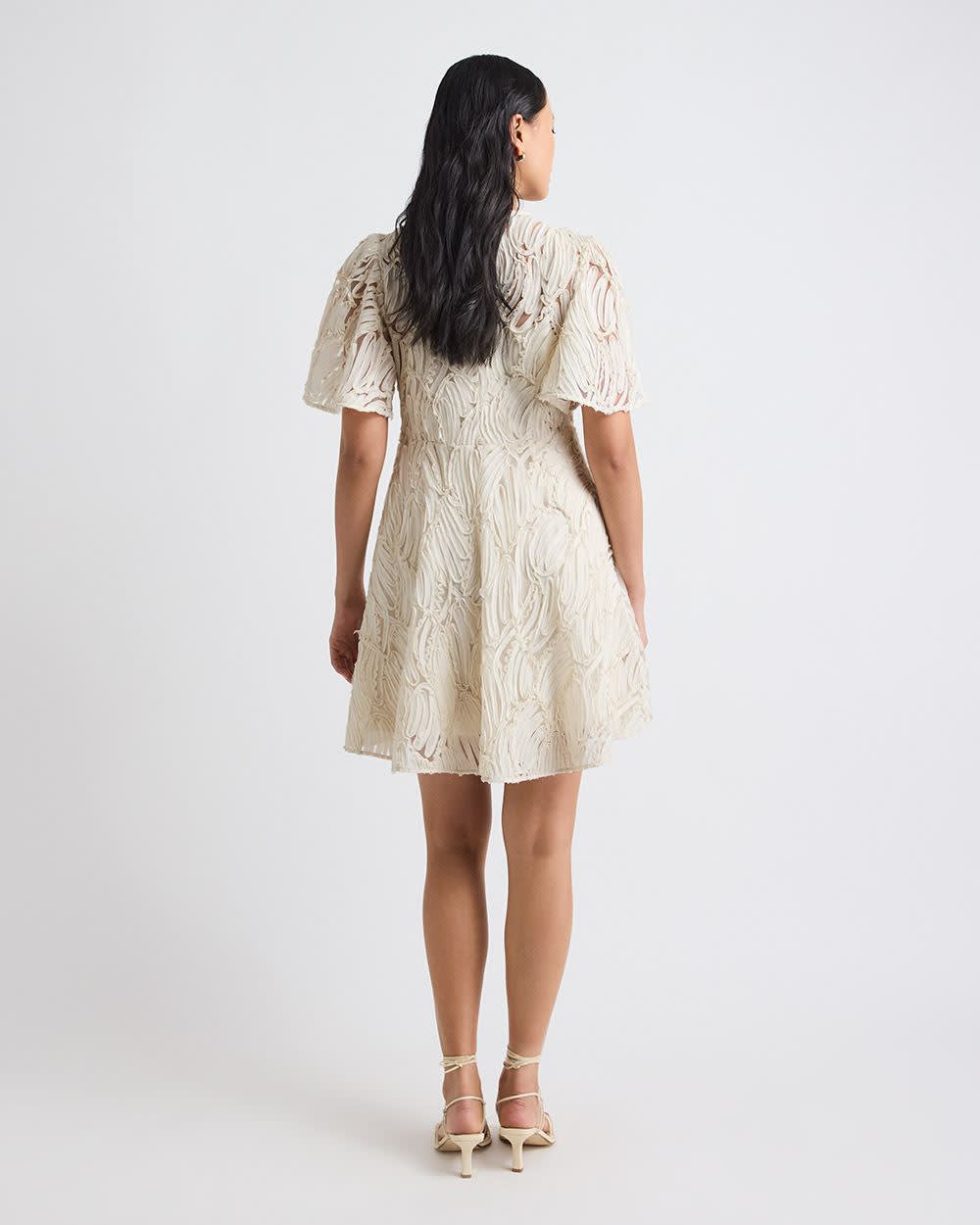 Short-Flutter-Sleeve Fit and Flare Novelty Dress