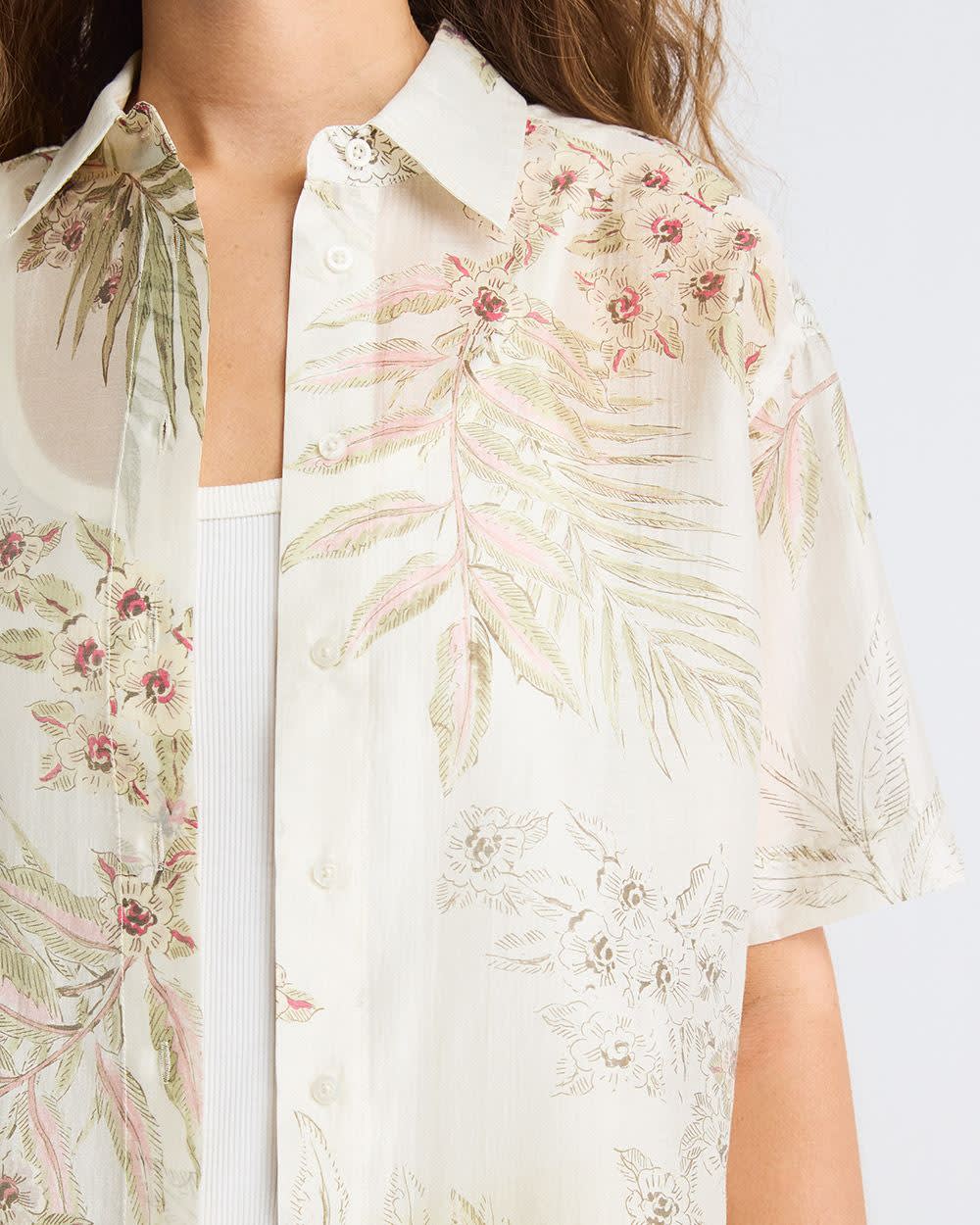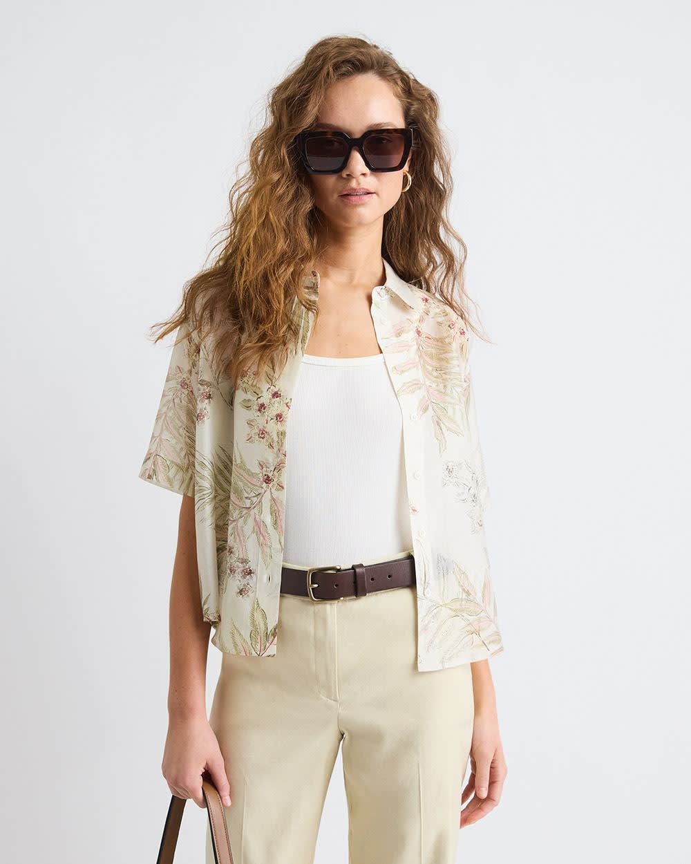 This beautiful buttoned-down blouse designed with short sleeves is sure to elevate any outfit. Pair it with denim shorts or linen pants for a look that is sure to stand out.