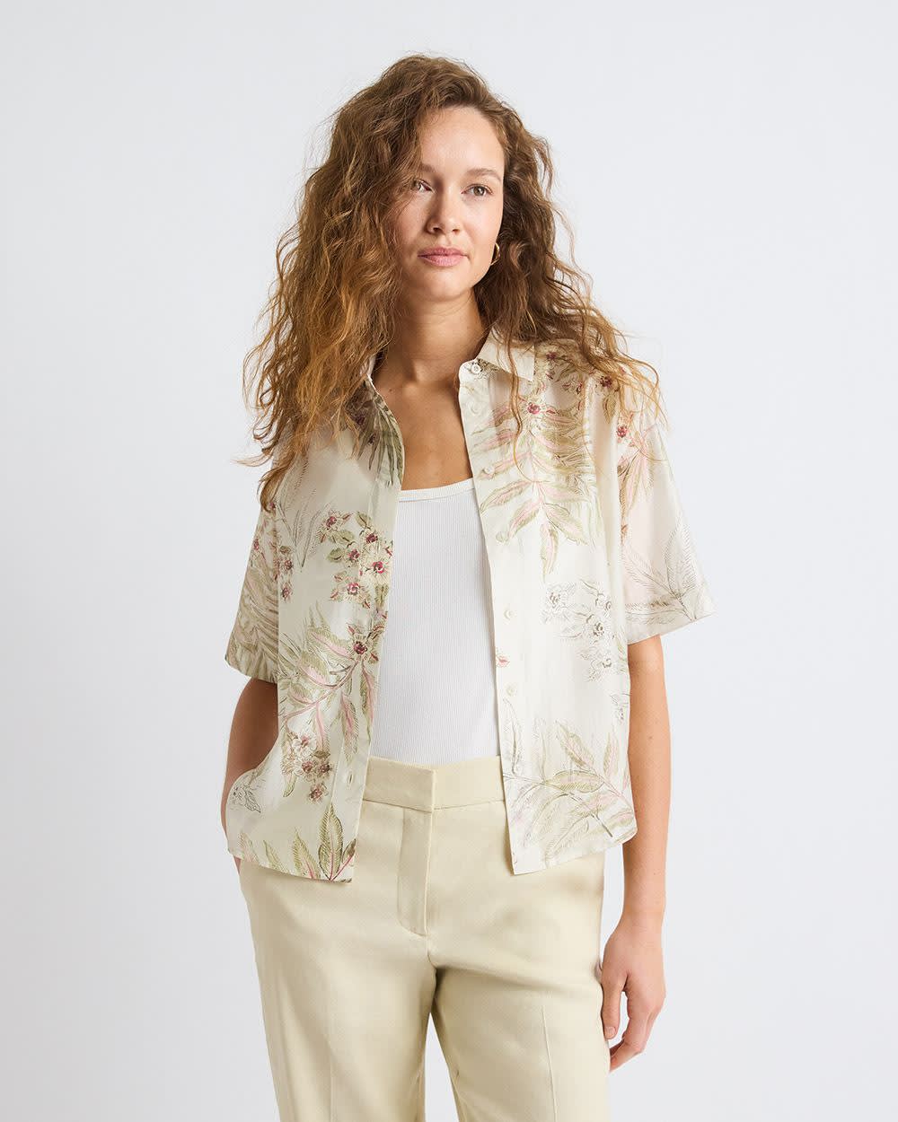 Short-Sleeve Buttoned-Down Blouse with Shirt Collar