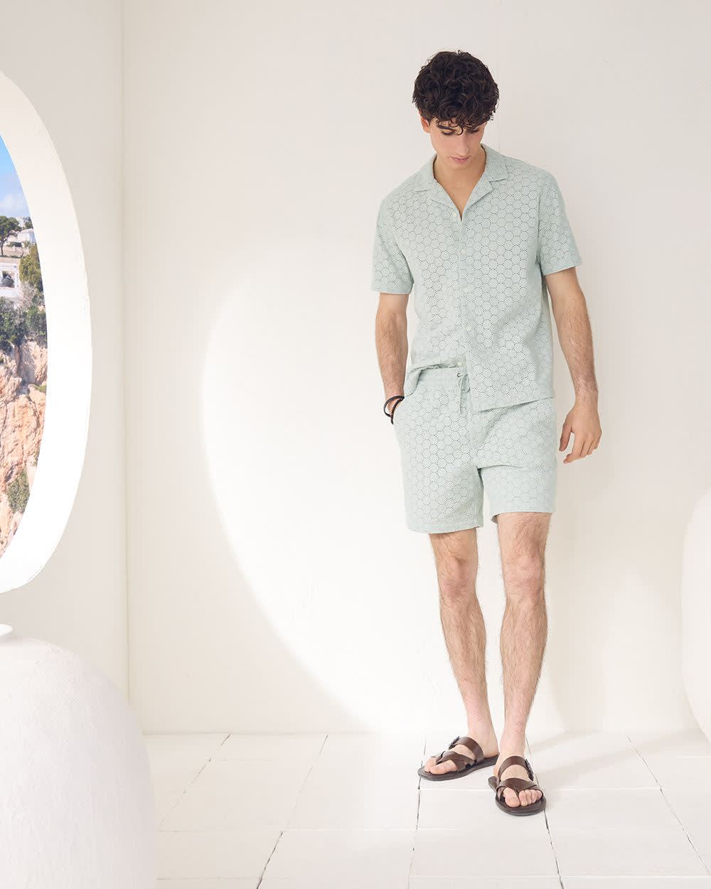 Short-Sleeve Camp-Collar Shirt with Embroidered Details