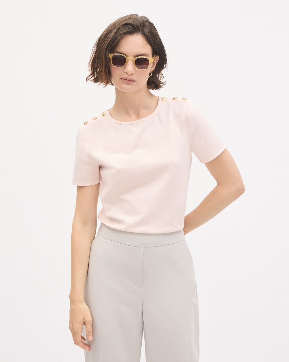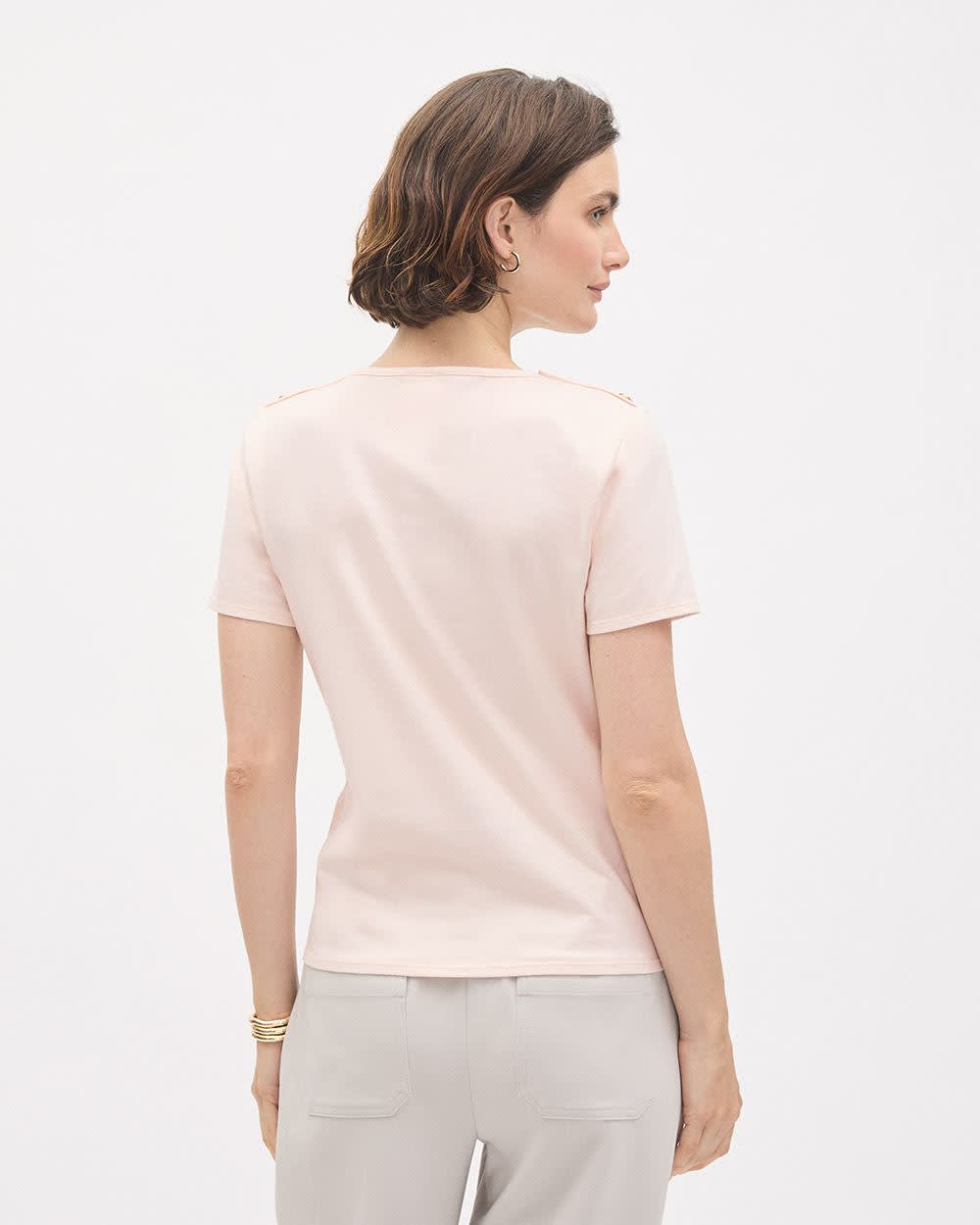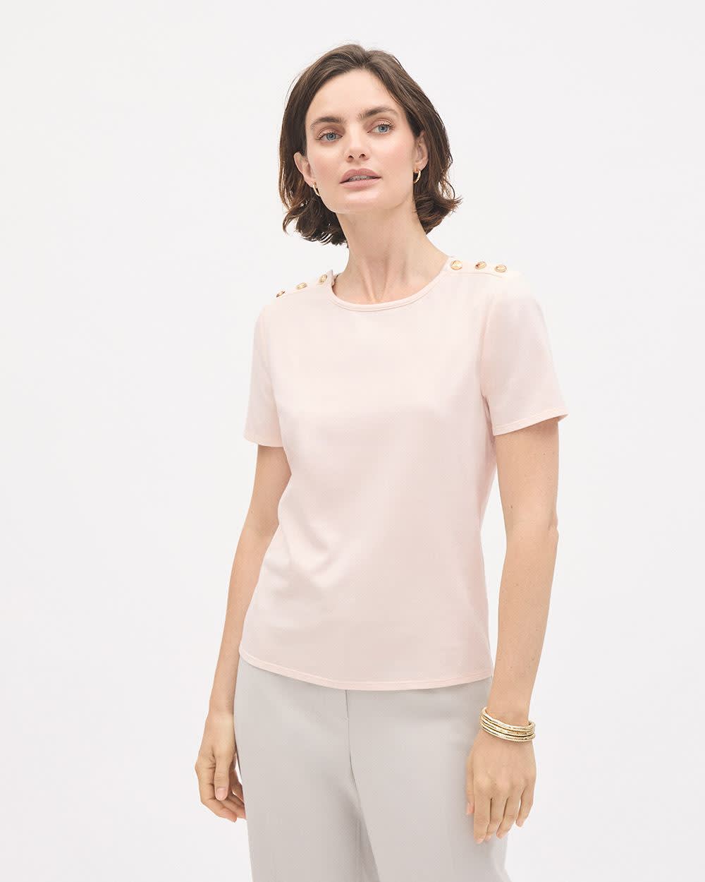 Short-Sleeve Crew-Neck Top with Buttons on Shoulder