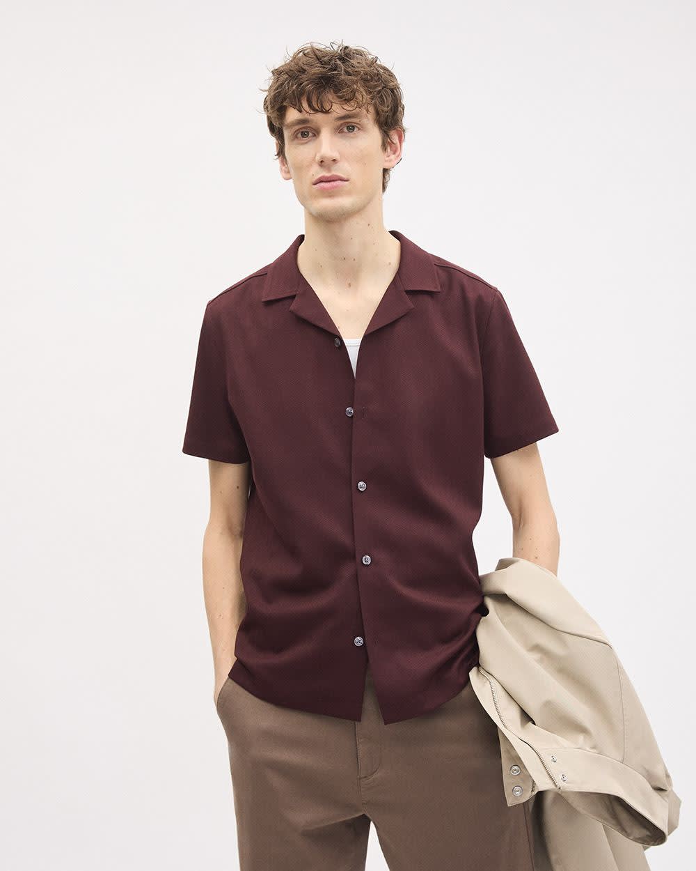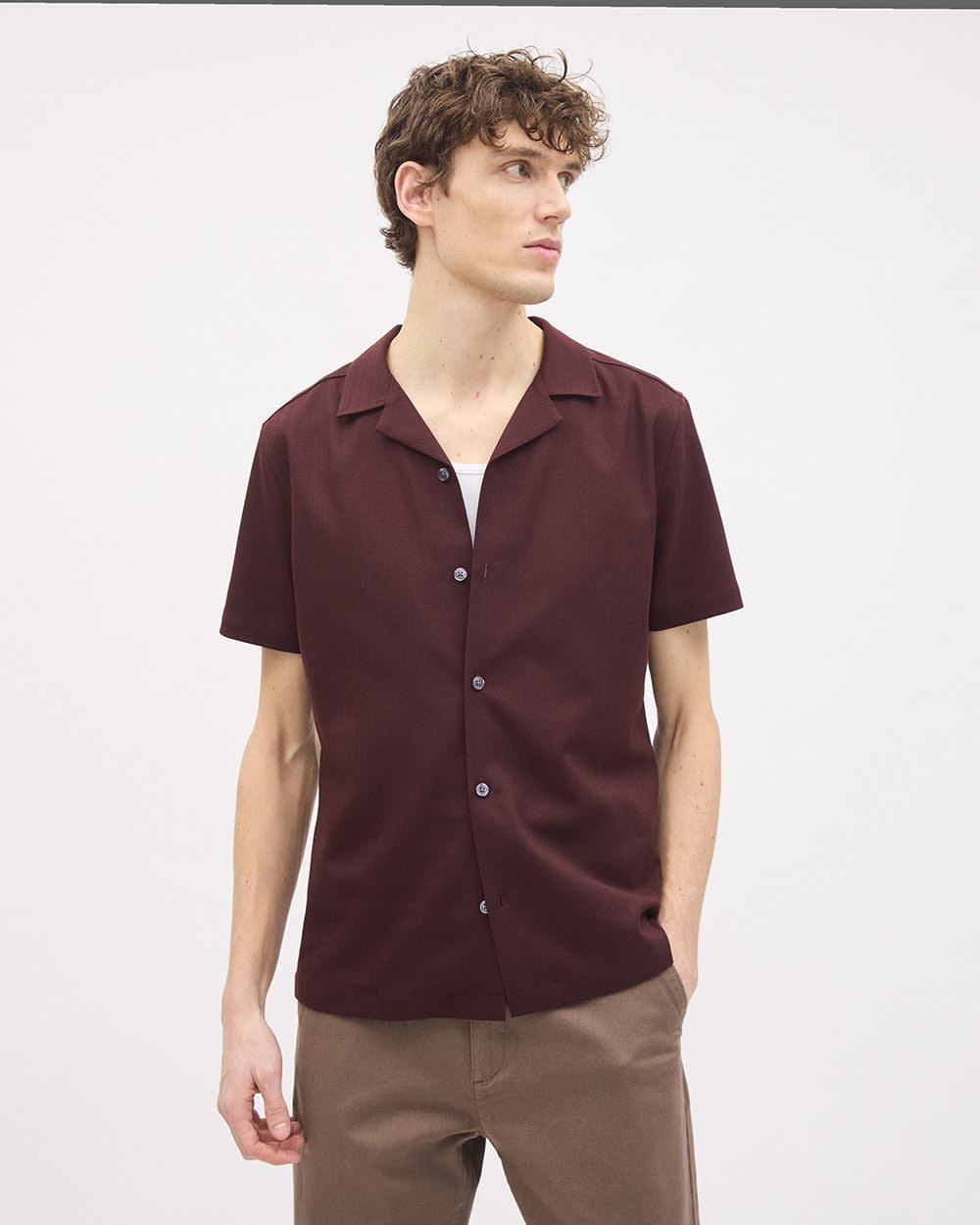 Short-Sleeve Herringbone Shirt with Camp Collar